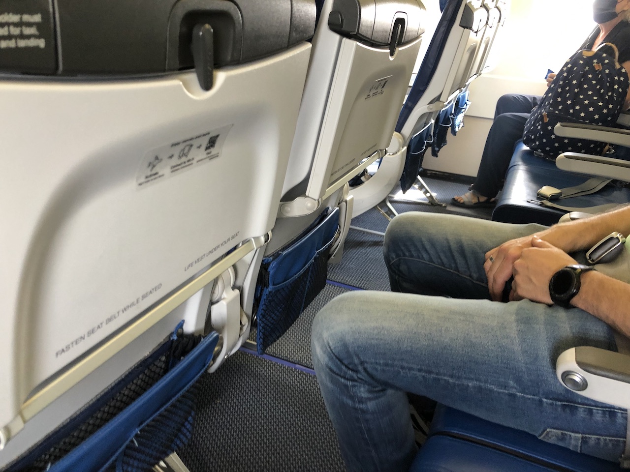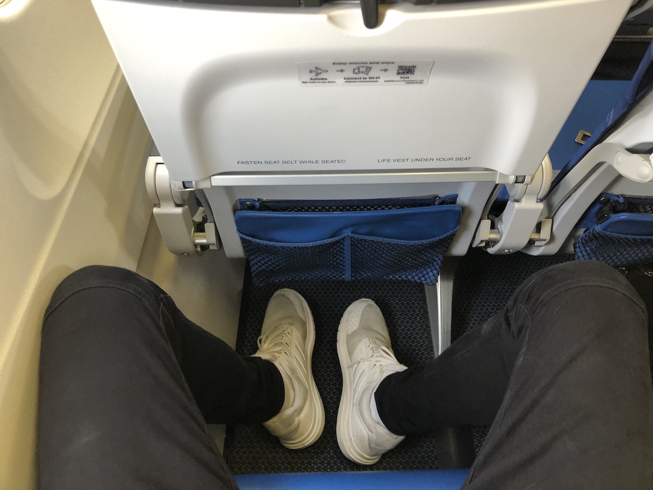 Bei Edelweiss gibt es noch richtig großzügige Sitztaschen für Bücher und sonstigen Schnickschnack, für das Handgepäck habe ich einfach den Stauraum unter dem geblockten Mittelplatz genutzt.