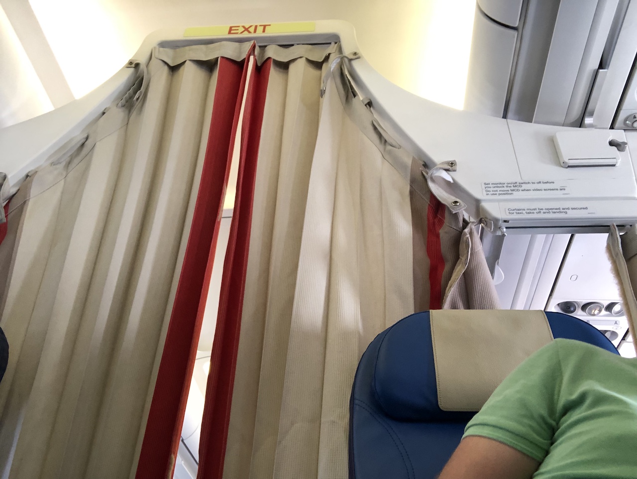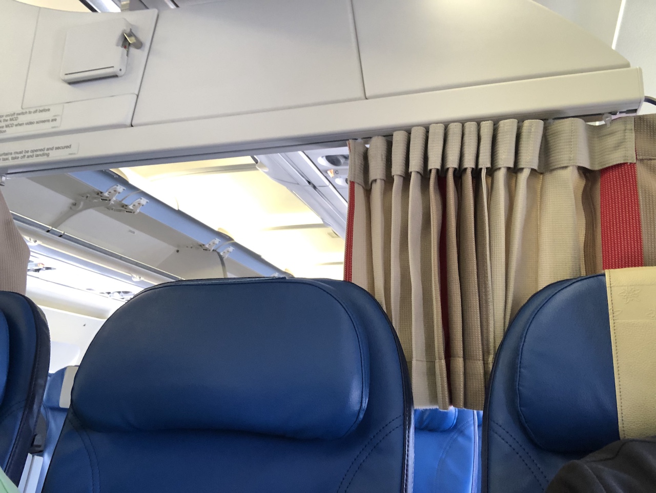Die Airbus A320 Flugzeuge der Schweizer sind mit 168 Sitzen bestuhlt, die Größe der Business Class variiert mit der Nachfrage. Heute waren es vier Reihen mit jeweils freien Mittelsitzen, somit war die Kapazität der Business bei 16 Passagieren. Unsere Plätze waren 4A und 4C, die Economy Class war mit einem Vorhang abgeteilt.