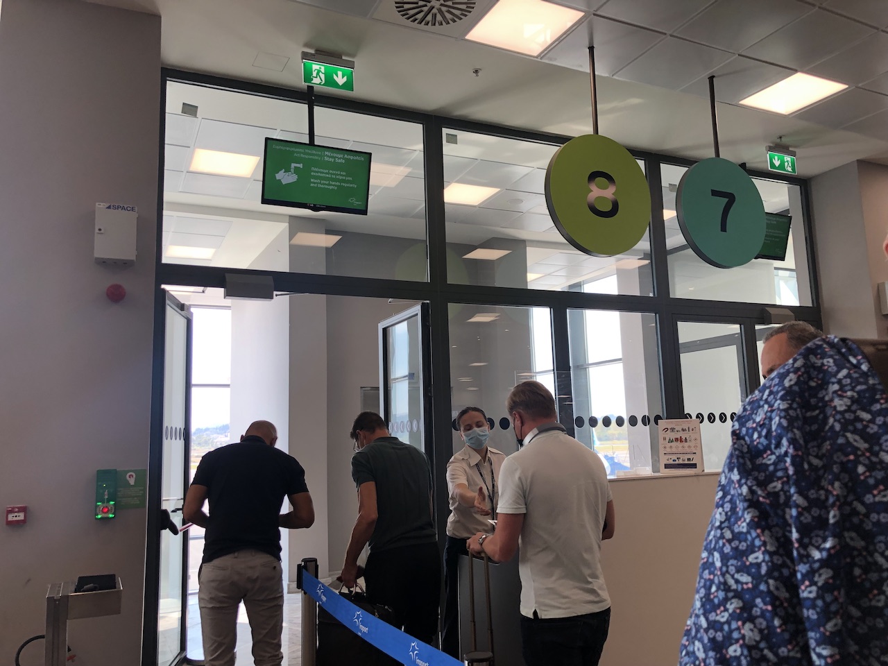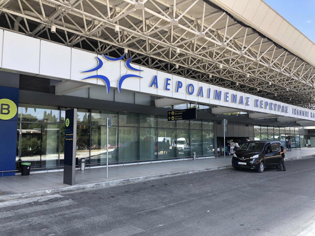 Der Flughafen der Insel Korfu ist recht überschaubar und wurde – wie zahlreiche andere Airports in Griechenland auch – von der Fraport gekauft. Das Logo und die Schriftart des Flughafenbetreibers hat einen gewissen Wiedererkennungswert, in der Hauptsaison ist zeitweise viel los, insgesamt funktioniert die Abfertigung schnell und reibungslos.