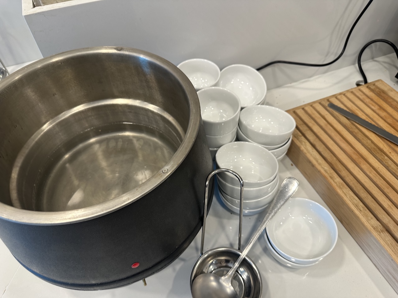 Wir waren am Vormittag in der Lounge, bei den warmen Optionen war Frühstück in Form von Rührei, Pilzen und Würstchen angesagt. Nichts davon sah wirklich appetitlich aus. Der Warmhaltetopf war leer, hier gesellte sich vermutlich nach unserem Besuch eine Suppe oder Eintopf ans Buffet.