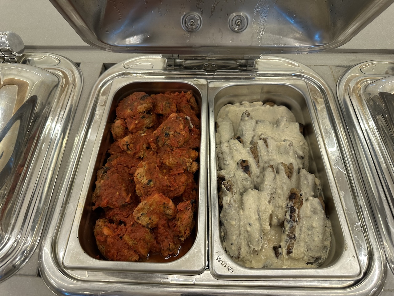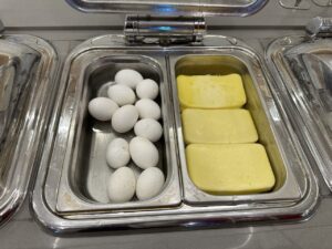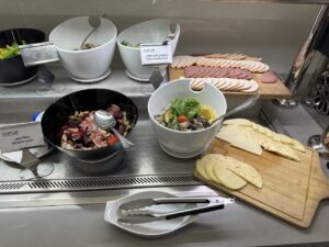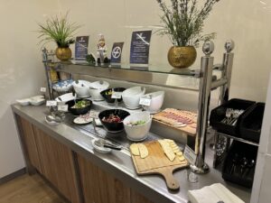 Bei der Ankunft in der Lounge hatten wir noch die letzten Ausläufer vom Frühstück mitbekommen.