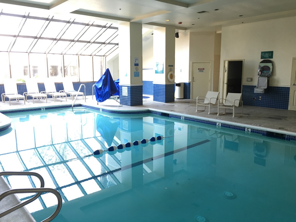 Das Embassy Suites LAX Airport verfügt natürlich auch über ein kleines Gym, sowie einen indoor Pool. Beides befindet sich nebeneinander im Erdgeschoss des Hotels.