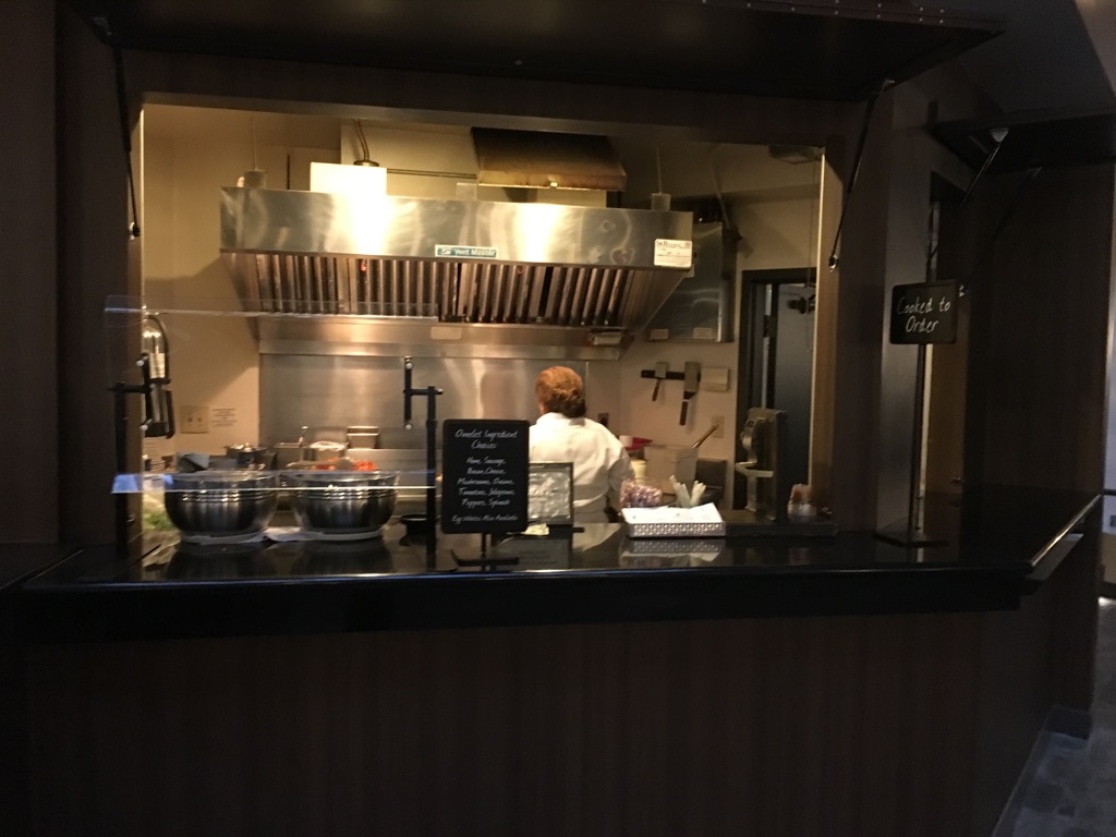 Das Frühstück ist, für ein kostenloses Frühstück in den USA, exzellent. Wirklich begeistert hat es mich aufgrund der Kantinenatmosphäre allerdings nicht. Neben dem üblichen Angebot an Toast, Bagels, süßen Teilchen, Müsli und frischen Obst, gab es auch eine Station an welcher man sich bei einem Koch frische Eierspeisen, Pfannkuchen und Waffeln bestellen konnte.