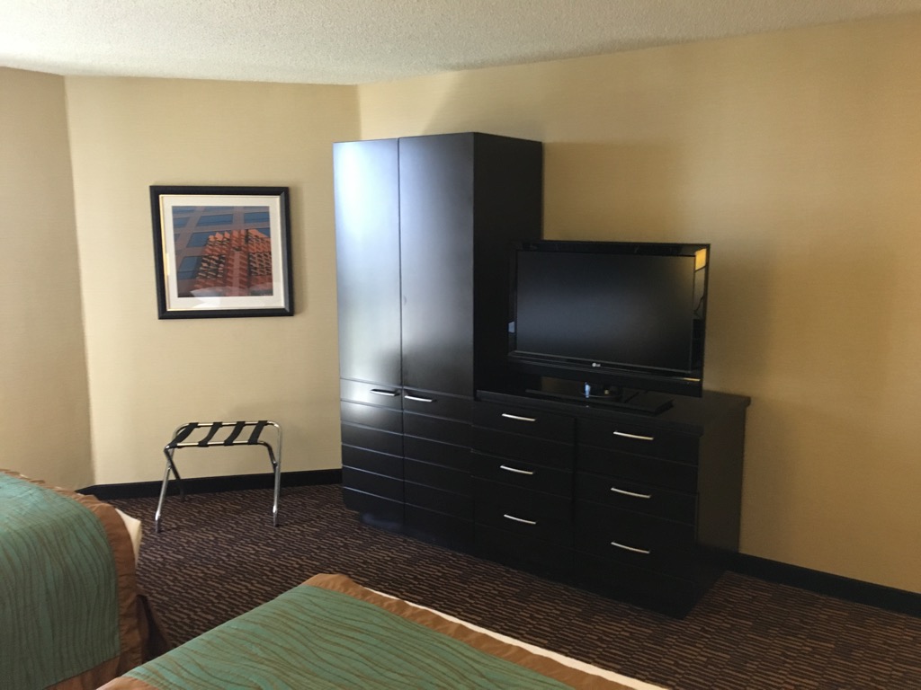 Ich hatte eine Twin Bett Suite gebucht, da diese aus irgend einem Grund 10 US$ günstiger war, als einen Suite mit einem King Bett. Im Schlafzimmer befanden sich entsprechend zwei Betten, sowie ein zweiter Fernseher auf einer Kommode und ein Kleiderschrank.