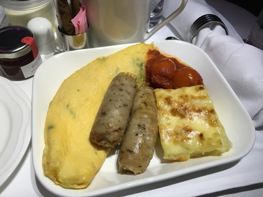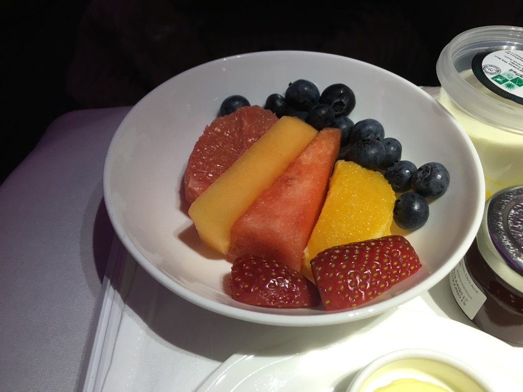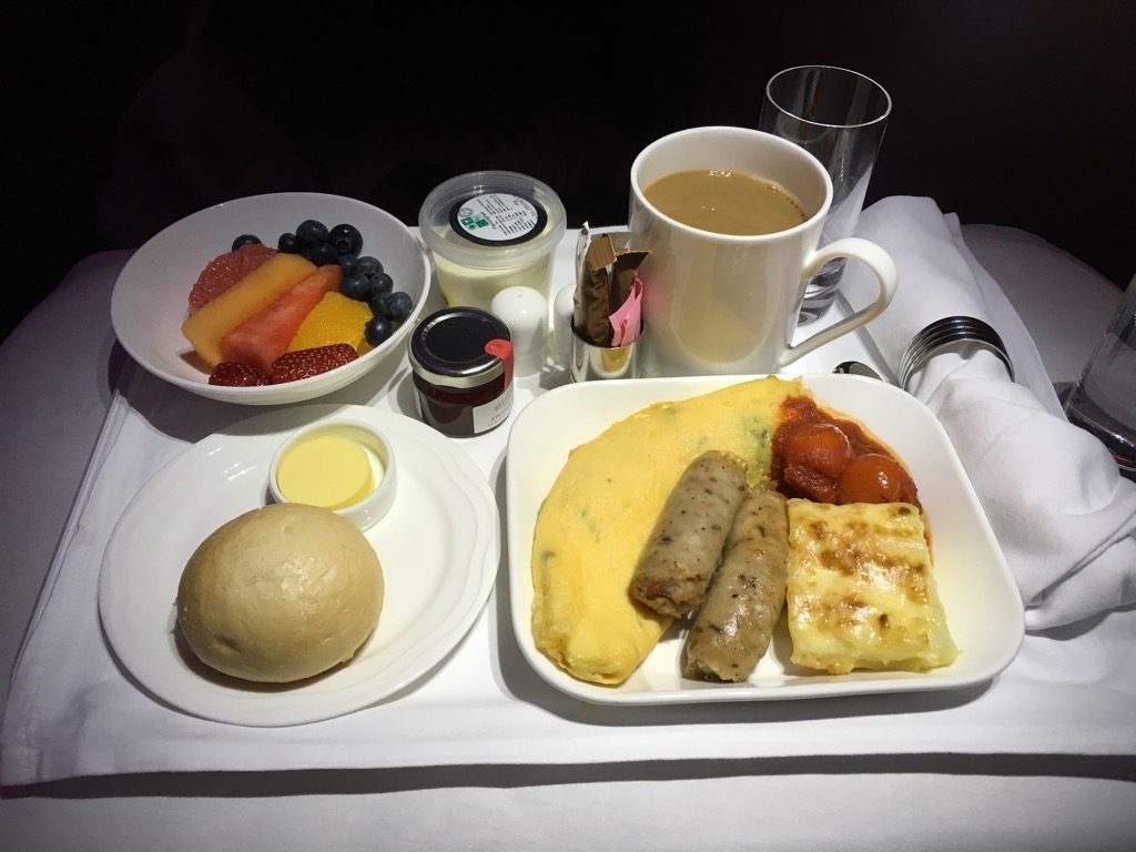 Nachdem ich ein paar alte Folgen „Friends“ geschaut habe, begann die Crew etwa 2.40 Stunden vor Dubai mit dem Frühstücksservice. Die Essenswünsche wurden bereits nach dem Start in Brisbane aufgenommen, sodass ich nur gefragt wurde, ob ich neben meinem doppelten Espresso noch einen Saft oder Smoothie wollte.