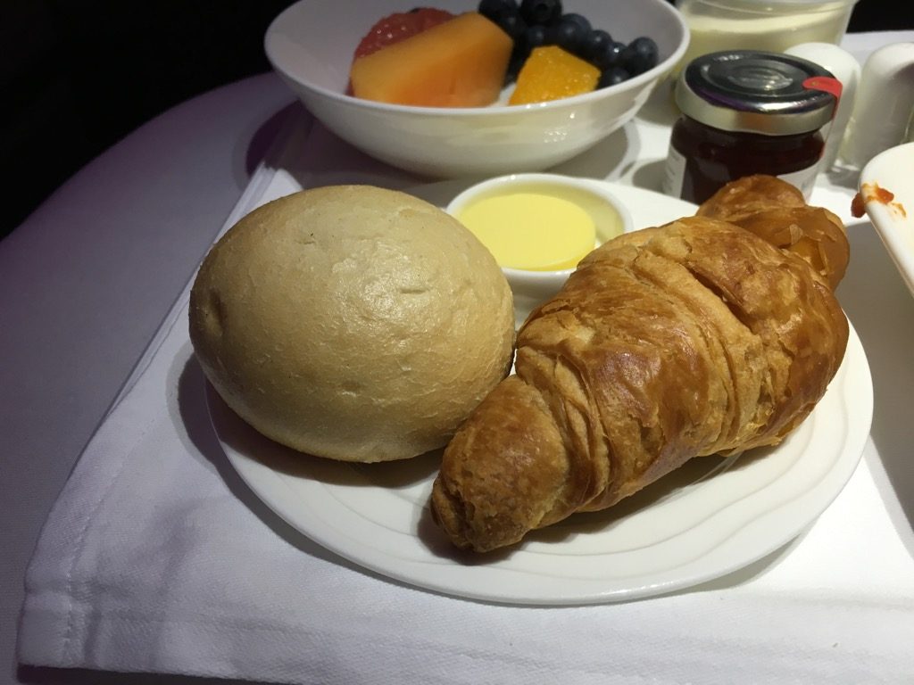 Auch beim Frühstück befand sich schon ein Brötchen auf meinem Tablett. Kurz darauf wurde mir auch noch ein Brotkorb mit Brot, Brötchen und Croissants angeboten. So ganz habe ich dieses Konzept nicht verstanden.