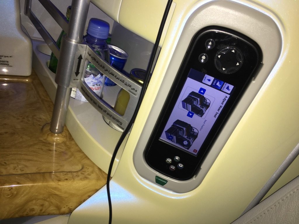 Interessanterweise lässt sich das IFE sowohl über die kleine Fernbedienung am Sitz, als auch über das große Tablet bedienen. Hierüber lässt sich übrigens auch der Sitz steuern.