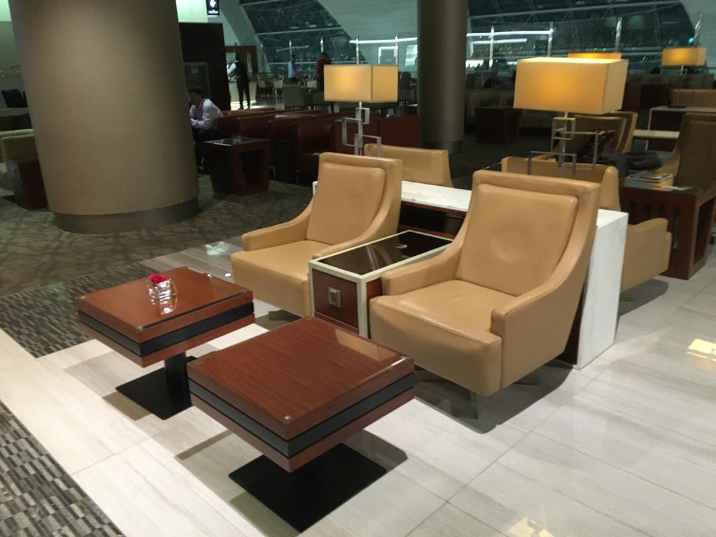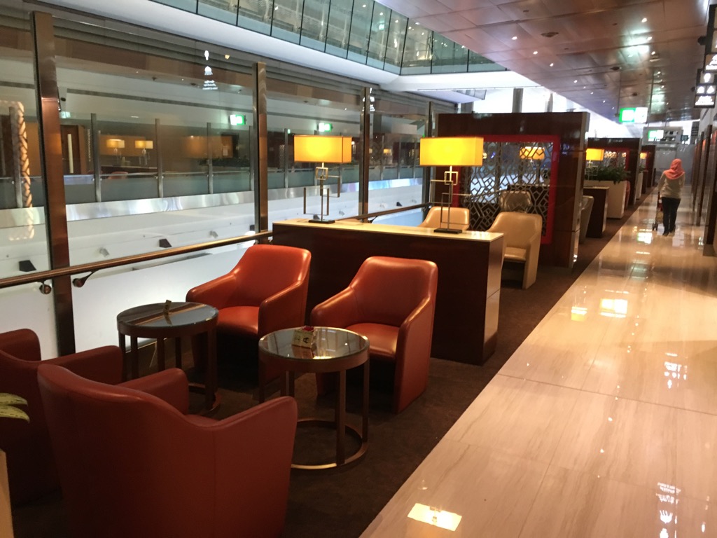 In der ganzen Lounge verteilt finden sich verschiedene Lounge Zonen mit Sesseln und Tischen, welche durch Raumtrenner voneinander etwas abgeschirmt sind. Durch die vielen verschiedenen Zonen hat man wenn man in der Lounge sitzt zwar immer noch den Eindruck einer sehr großen Lounge, allerdings nimmt man die fast unwirklichen Dimensionen hier dann nicht mehr wahr.