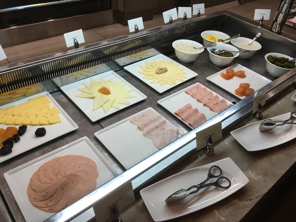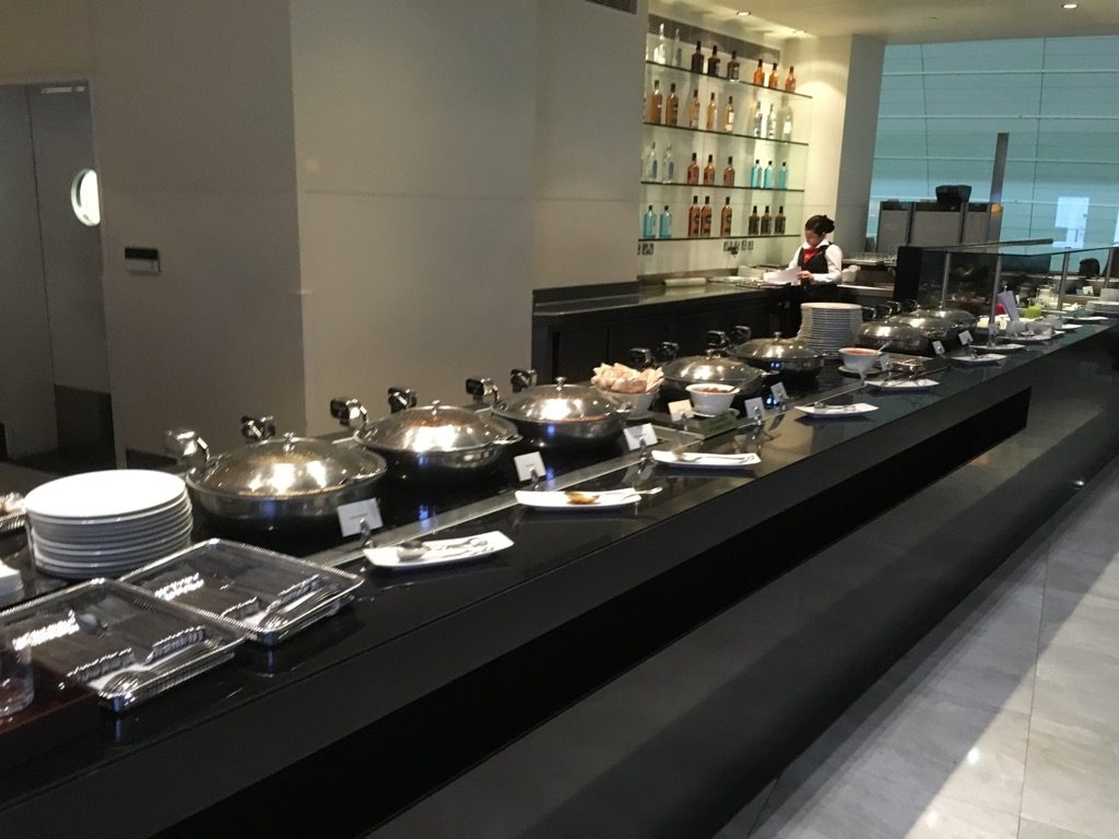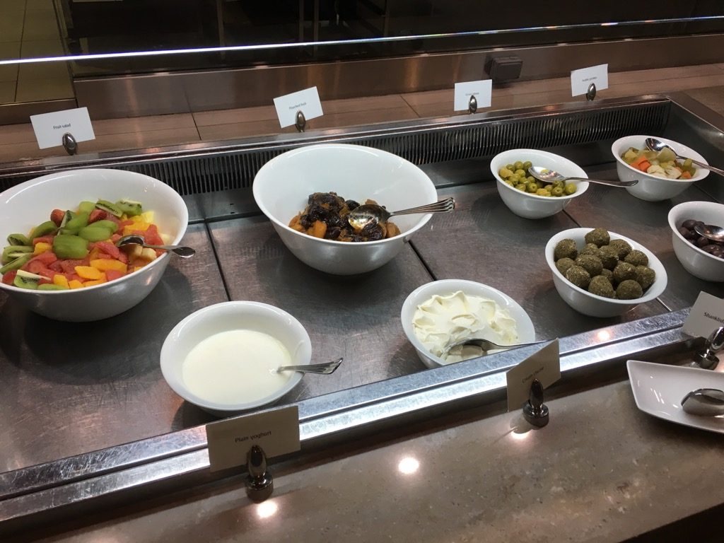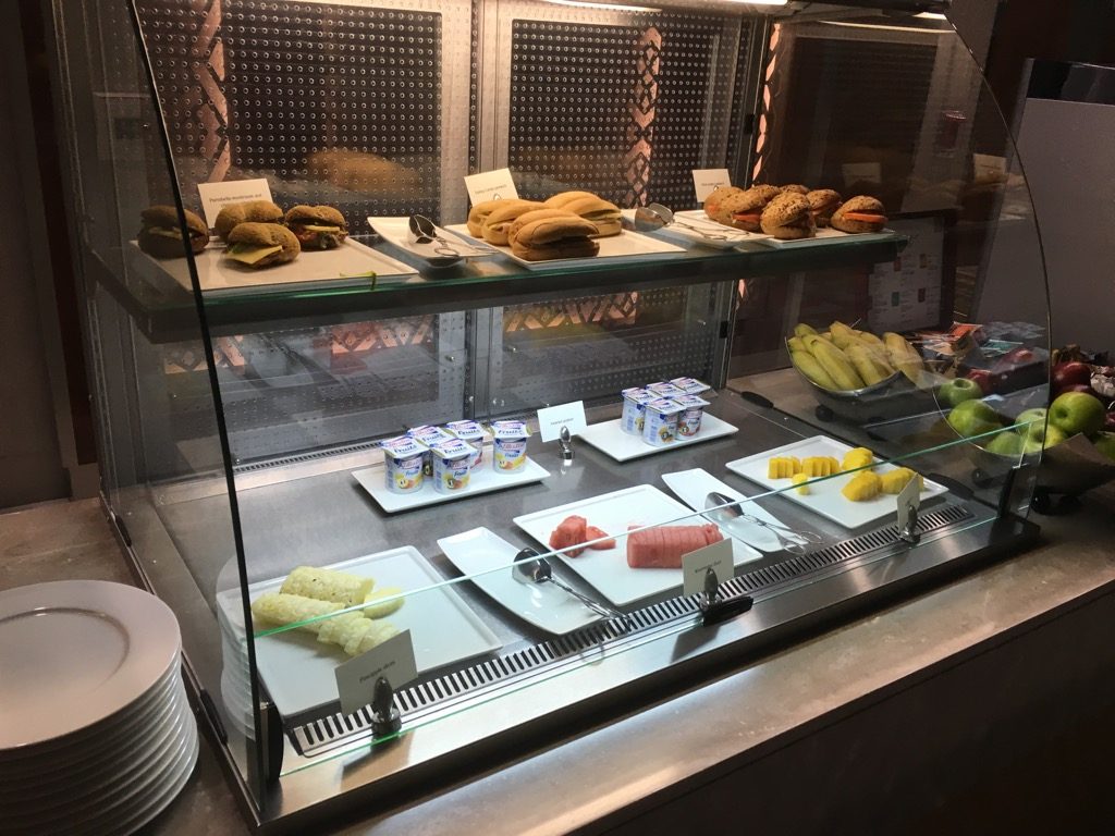 Die Auswahl an Speisen ist dabei für eine Business Lounge sehr umfangreich. Allerdings verzichtet man auf a la carte Menüs und alles wird auf den Buffet angeboten. Je nach Tageszeit wird das Angebot angepasst.