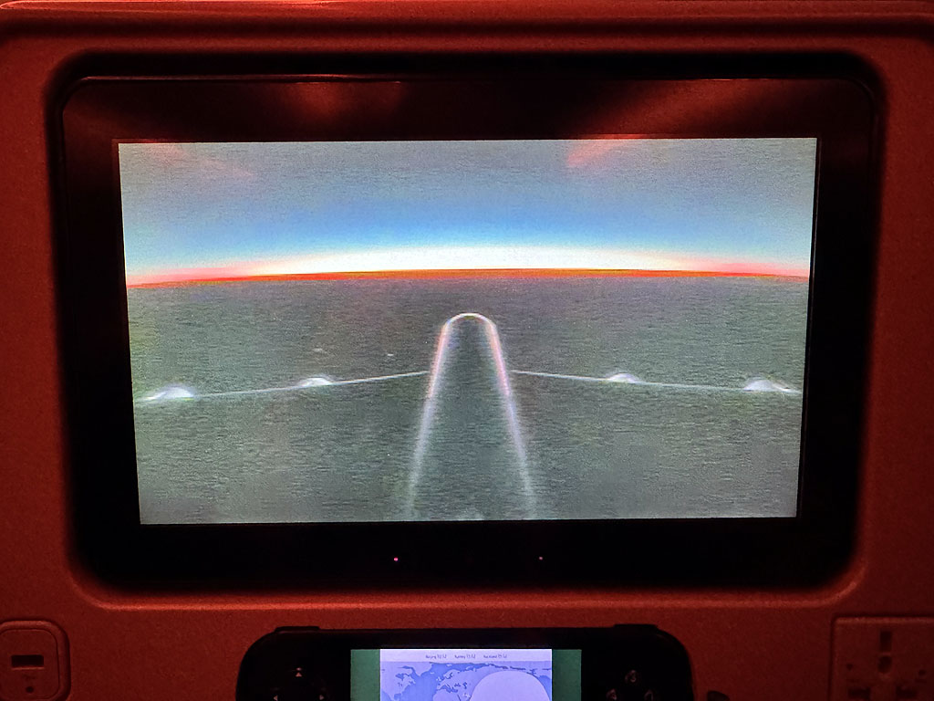 Um kurz nach Mitternacht deutscher Zeit gab es dann noch eine Getränkerunde mit Kaffee und Tee. Erst danach kehrte Ruhe ein und die „Schlafenszeit“ begann. Mit 90 Minuten währte sich nicht lange, denn dann folgte bereits die Ausgabe des Frühstücks. Wobei Frühstück übertrieben ist, es gab einen Müsliriegel und Getränke. Nach ca. 25 Minuten wurde dann abgeräumt.