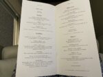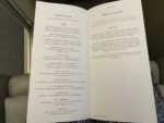 Noch vor dem Start wurde gemeinsam mit dem Begrüßungsgetränk das Menü ausgeteilt – eine nette Geste, da die Crew im Gespräch bereits erfahren hatte, dass wir gerne schlafen möchten.
