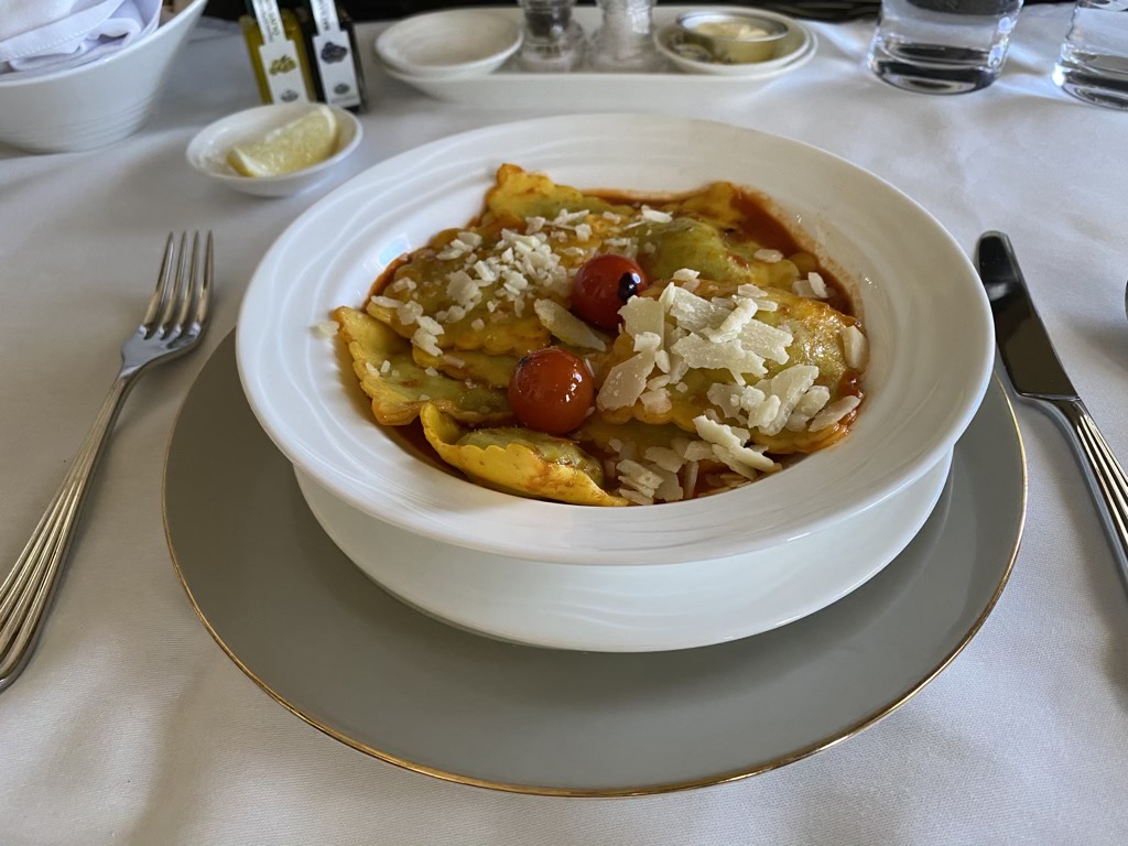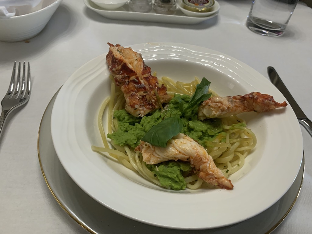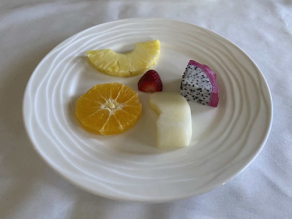 Als Hauptgang hatte ich die Ravioli. Pasta geht für mich immer und auch Emirates hat meine Erwartungen erfüllt. Christoph war von seinem Hummer leider weniger begeistert. Während er den Hummer als gummiartig beschrieb, waren die Pasta knusprig. Schade, das Menü hat auf so Einiges hoffen lassen. Als Dessert haben wir uns beide für Früchte entschieden. Wie immer ein erfrischender, kleiner und gesunder Nachtisch.