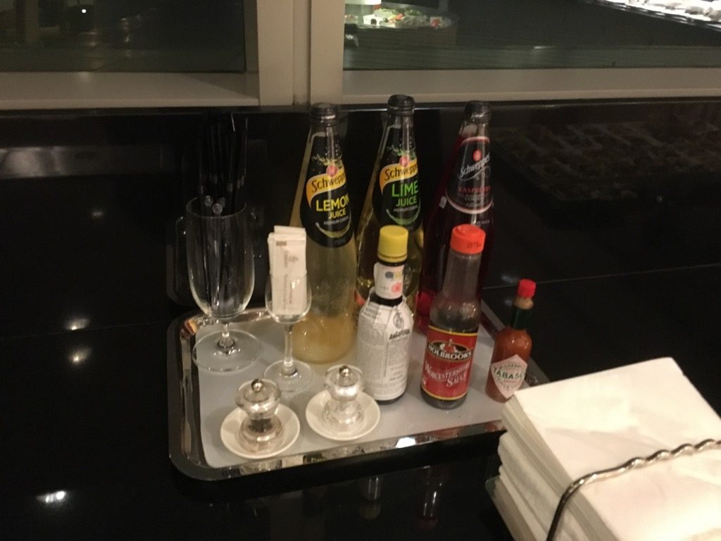 Getränke finden sich an mehreren kleinen Bars in der Lounge. Diese sind gut bestückt und zur Selbstbedienung vorgesehen. Neben einer Reihe von alkoholfreien Getränken gibt es auch die übliche Auswahl an Bier, Wein und Spirituosen.