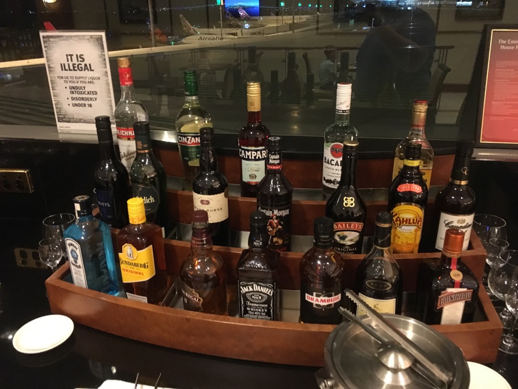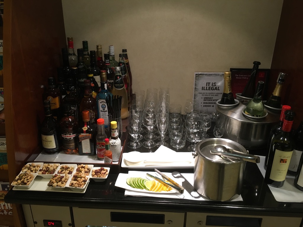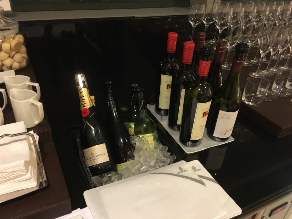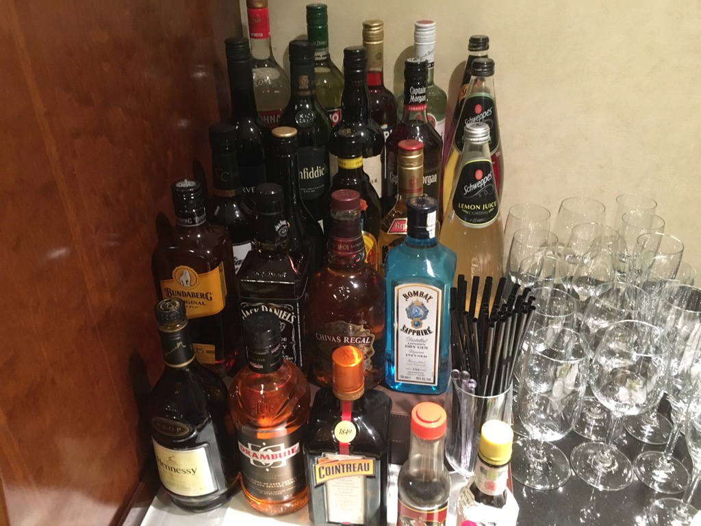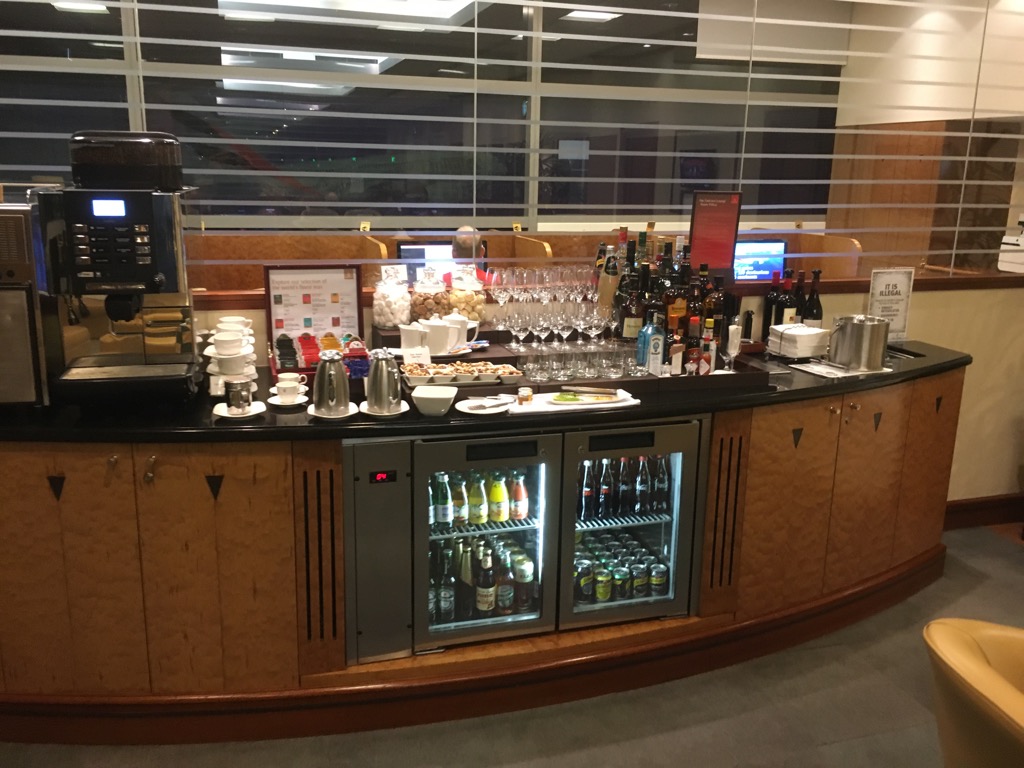 Getränke finden sich an mehreren kleinen Bars in der Lounge. Diese sind gut bestückt und zur Selbstbedienung vorgesehen. Neben einer Reihe von alkoholfreien Getränken gibt es auch die übliche Auswahl an Bier, Wein und Spirituosen.