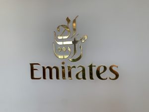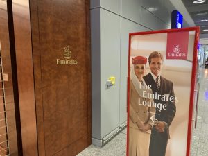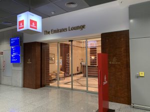 Der Eingang der Emirates Lounge in Frankfurt ist recht einfach zu finden, sobald man das Emirates Gate erreicht hat.