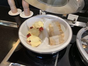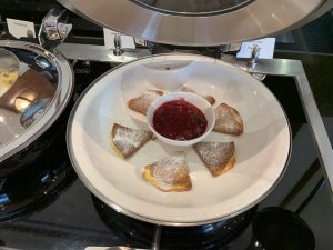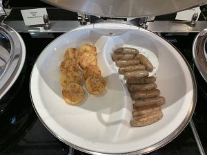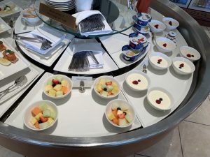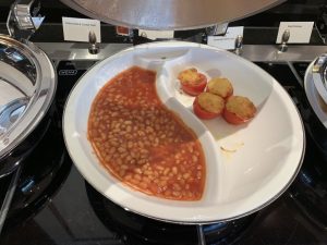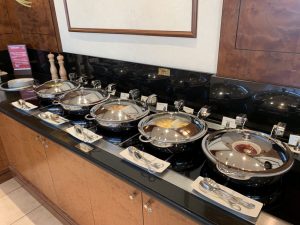 Wie immer in den Emirates Lounges gab es neben einem großen Buffet auch eine Buffet- Insel, auf welcher warme und kalte Speisen angeboten werden. Ich habe die Emirates Lounge vor meinem Flug nach Dubai am Morgen besucht und entsprechend wurde hier gerade Frühstück serviert.