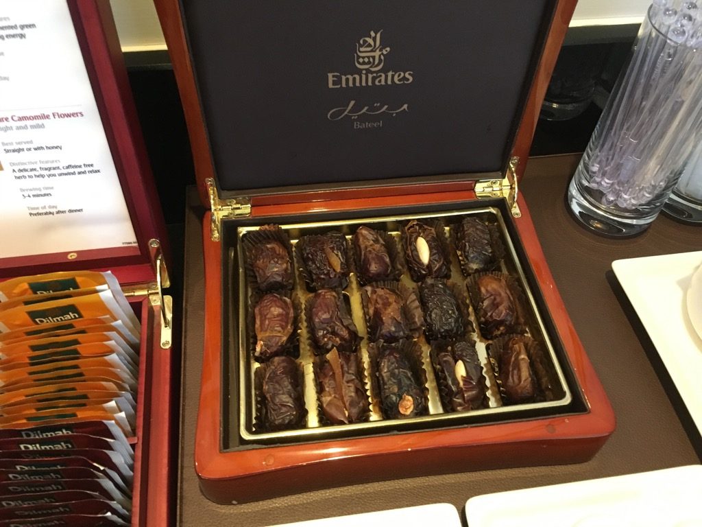 Natürlich gab es auch Kaffee und Tee am Buffet und die traditionellen Emirates Datteln durften auch nicht fehlen.
