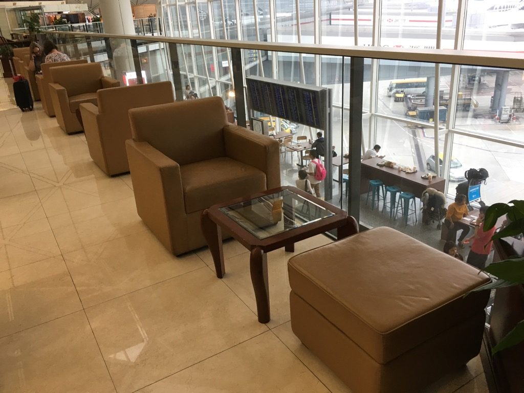 Die Emirates Lounge Hongkong ist wie die meisten Lounges in Hongkong nach oben zum Terminal offen. Dies hat zwar den Vorteil, dass man sehr viel Tageslicht in der Lounge hat, allerdings dringen auch alle Geräusche und Durchsagen aus dem Terminal in die Lounge, was durchaus dazu führen kann, dass es im Loungebereich unruhig wird.