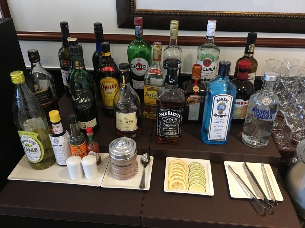Auf dem Buffet gab es auch eine Vielzahl an alkoholischen und nicht alkoholischen Getränke zur Selbstbedienung. Dabei war das Angebot an alkoholischen Getränken für Lounge hochwertig und entsprach dem, was auch an Bord der Emirates Business Class serviert wird.