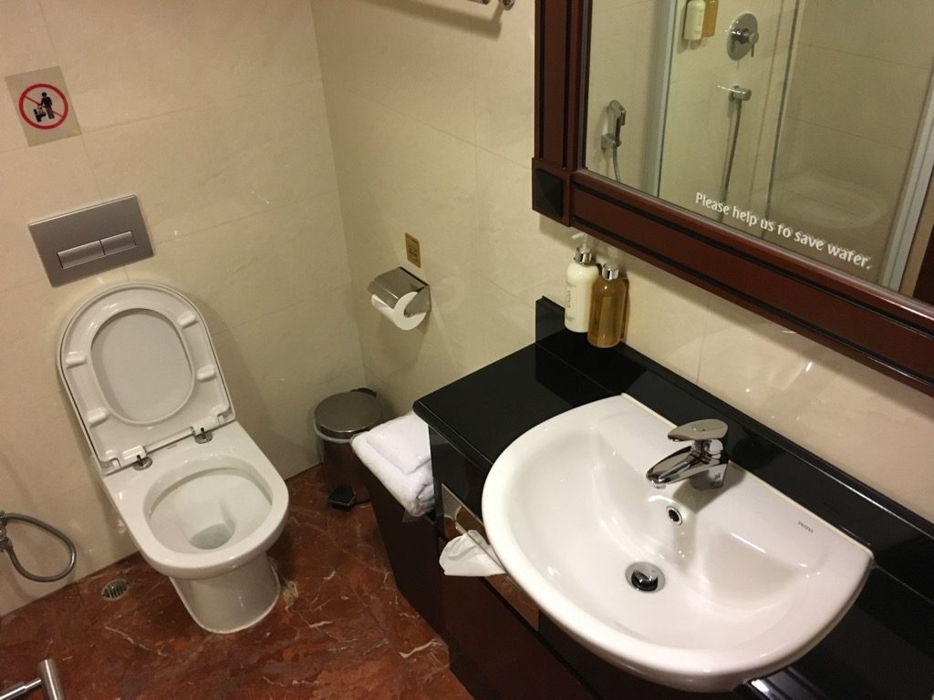 Ich fand die Bäder in der Emirates Lounge Hongkong zwar nicht besonders schön, allerdings sehr funktionell und sie waren ohne Wartezeit verfügbar.