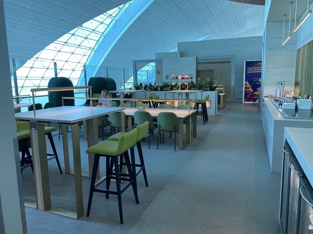 Die Zeit am Boden verbrachte ich in der Marhaba Lounge, da die Lounges von Emirates seit dem 21. März geschlossen waren. Diese durfte ich aufgrund des Priority Pass, welcher bei der American Express Platinum enthalten ist nutzen und sie bot einen erheblichen Vorteil, denn sie war leer, obwohl sie die einzige geöffnete Lounge im Terminal 3 war. Somit gab es überhaupt keine Probleme Abstand zu wahren.