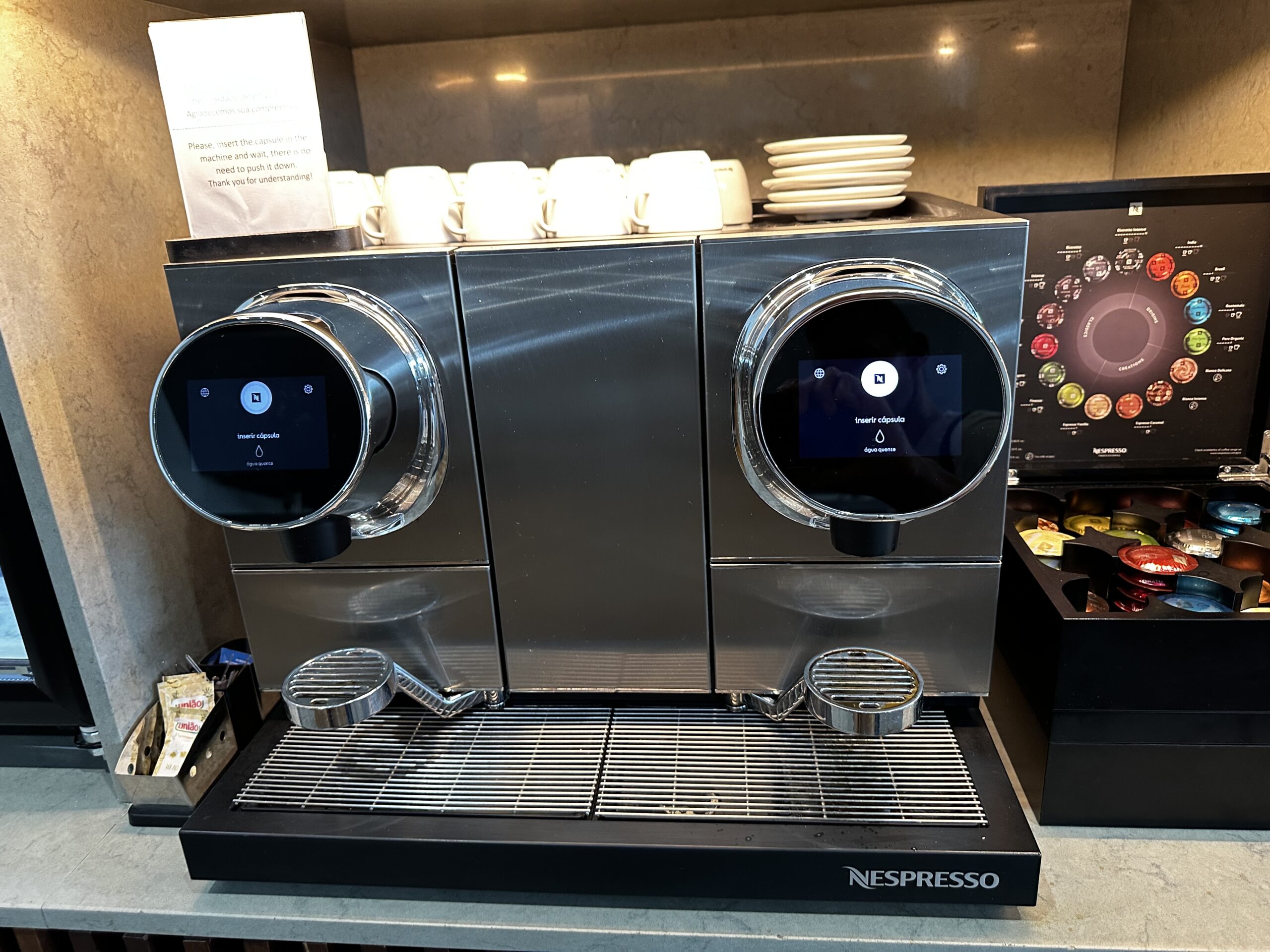 Statuskunden und Fluggäste der First und Business Class sämtlicher Carrier dürfen ebenfalls hier rein, im Fall von SWISS oder Lufthansa werden auch Statuskunden mit Star Alliance Gold Karte akzeptiert. Normalerweise darf man hier drei Stunden vor Abflug rein, wir waren schon etwas früher da, die Rezeptionistin machte eine Ausnahme.