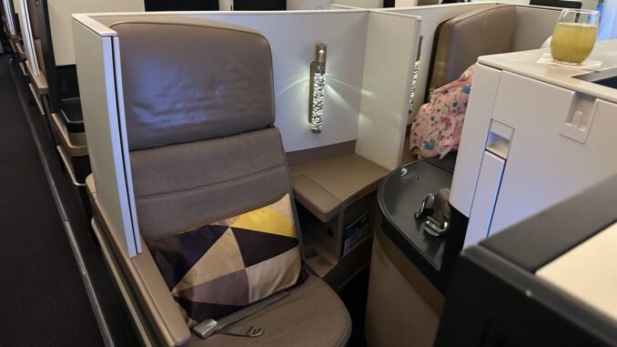 In der Mitte gibt es dann noch die Gangplätze, welche zwar für Alleinreisende auch geeignet sind, aber dann auch nicht so viel Privatsphäre bieten wie die anderen Sitze. Man kann hier aber auch zum Gang einen Sichtschutz heraus ziehen, was durchaus noch etwas bringt, eine vollwertige Suite ist es aber natürlich nicht.