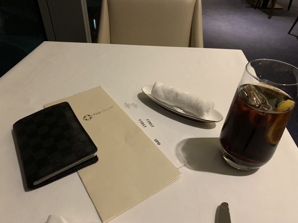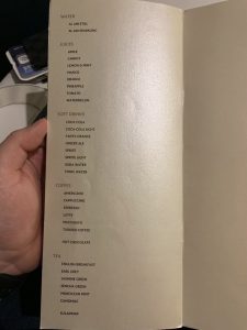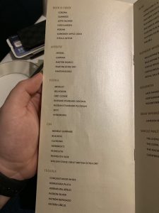 In der Speisekarte war auch die komplette Getränkekarte enthalten. Hier konnte man aus dem vollen schöpfen und die Kellner haben die Getränke in der ganzen Lounge serviert.