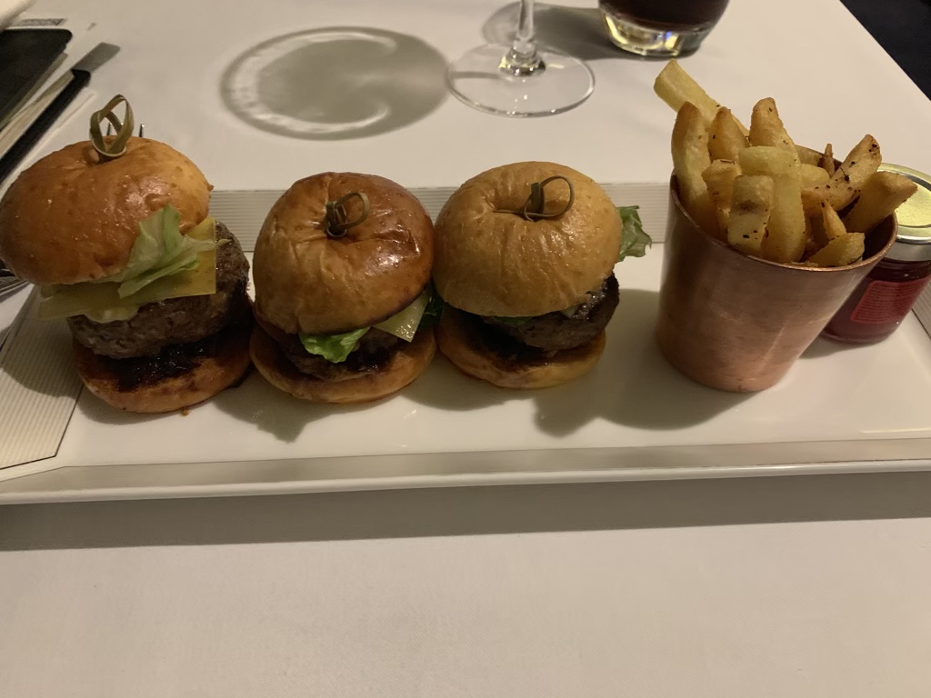 Daher haben ich noch die Slider bestellt. Die Mini Hamburger waren gut, wobei sie natürlich auch nicht wirklich First Class sind. Zudem fand ich die Burger in der United Polaris Lounge, welche eine Business Lounge ist, immer besser. Hier man natürlich erwähnen, dass die USA auch das Land der Hamburger sind.