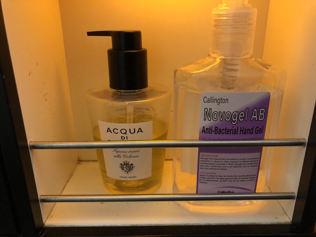 Es gibt zwei Waschräume für die maximal 28 Passagiere, darin findet man jetzt auch Desinfektionsmittel und eine Anweisung zum richtigen Händewaschen.