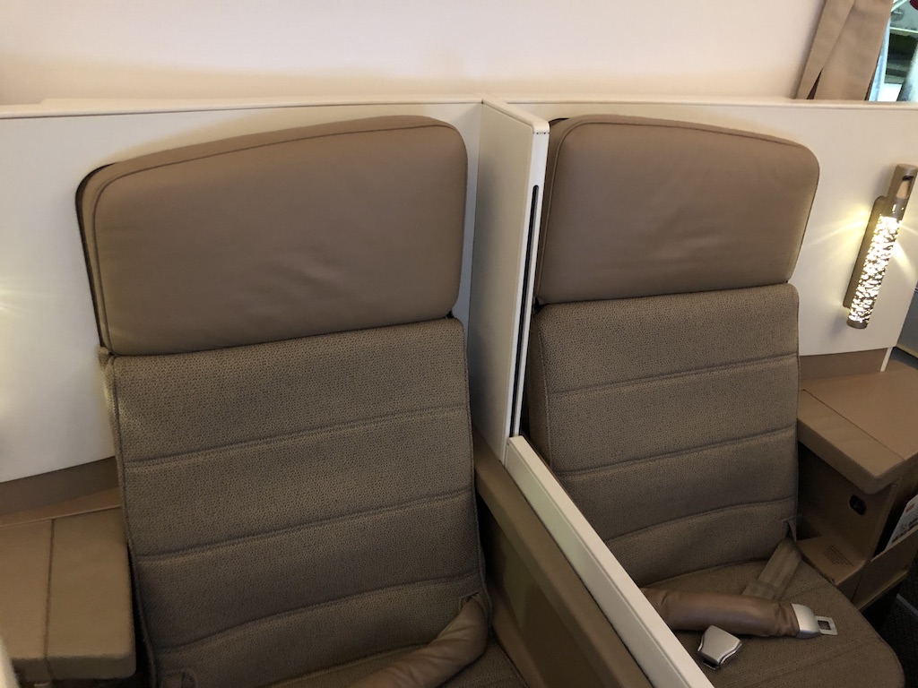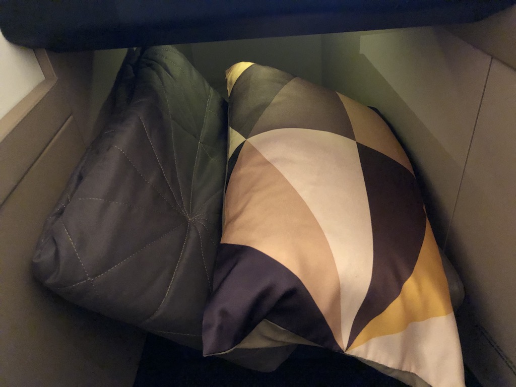 Dort lag bereits zum Boarding ein Kissen und eine sehr flauschige Decke. Bei den Plätzen, die direkt nebeneinander liegen, kann auch eine Trennwand hochgefahren werden.