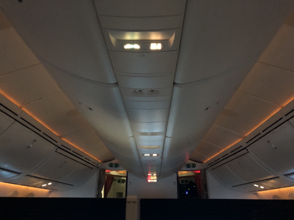 Es war wenig los an Bord, die Business Class war nur zu 50% belegt. Dementsprechend entspannt verlief das Boarding, selbst bei Full House gibt es ausreichend Stauraum in den riesigen Gepäckfächern.
