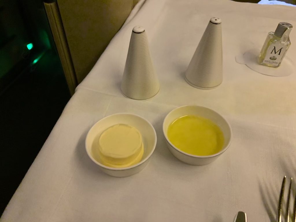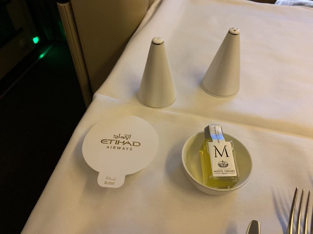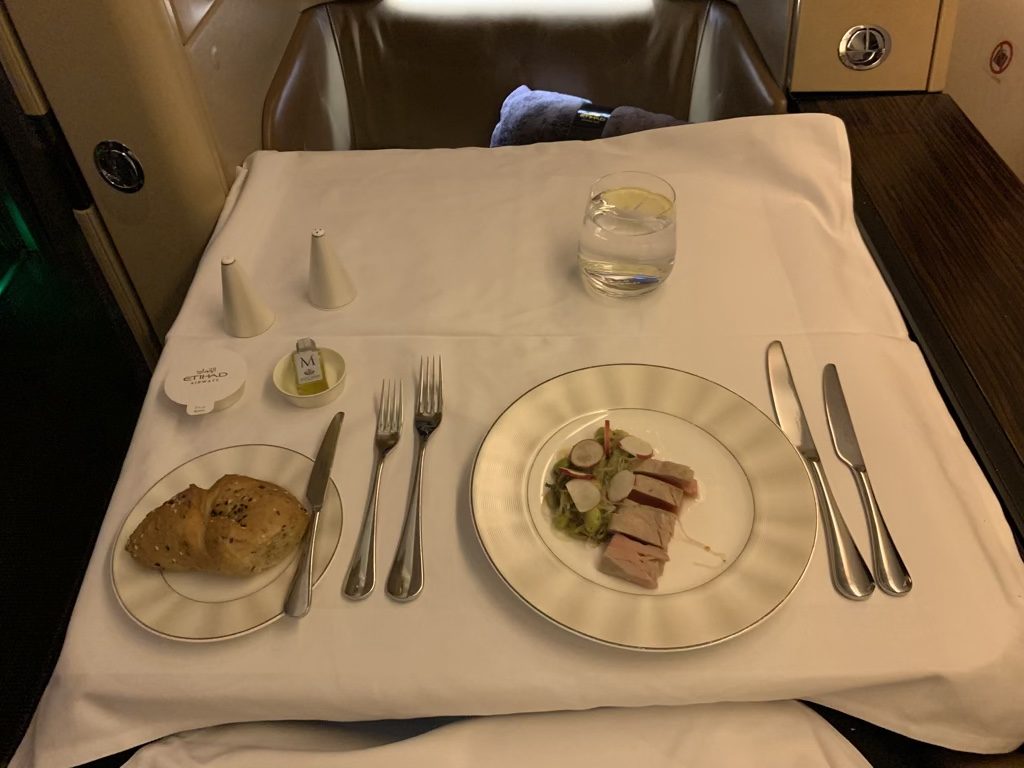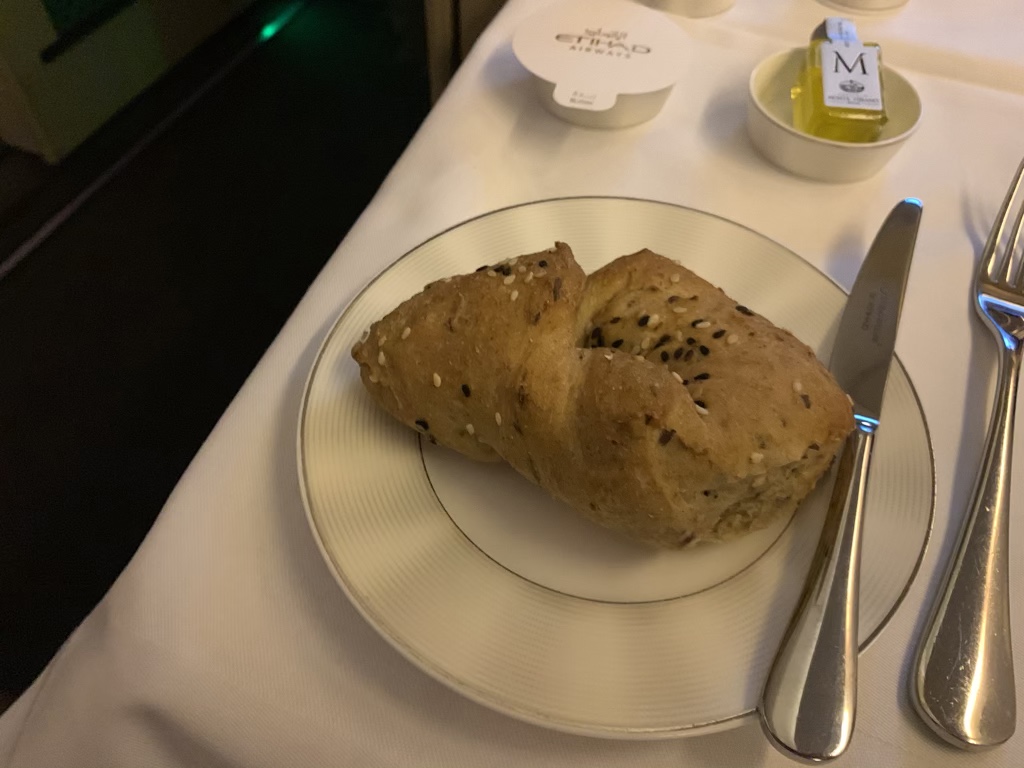 Das Essen auf diesem Flug war nur mittelmäßig. Ich habe zwar auch schon schlechter in der First Class gegessen, aber meistens ist das Essen doch deutlich besser als das, was Etihad Airways aus Singapur serviert.