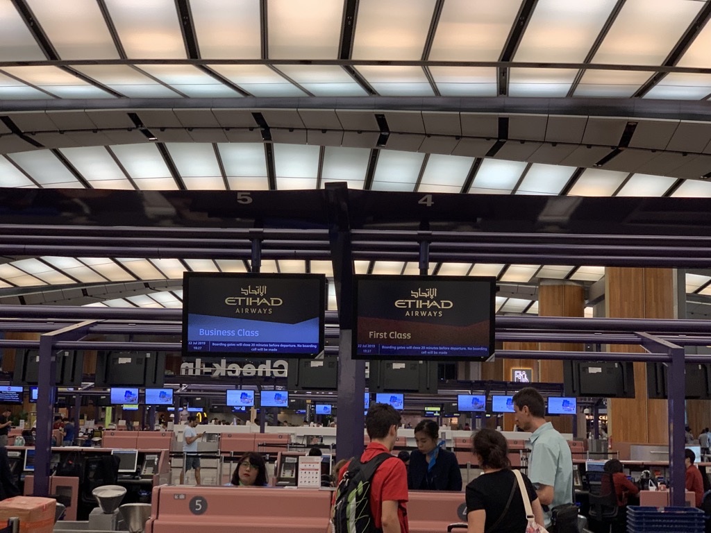 Für meinen Rückweg aus Asien habe ich mich für die Etihad Airways First Class entschieden. Ab Singapur fliegt Etihad nur einmal am Tag mit einer Boeing 777-300er nach Abu Dhabi, welches die älteste Kabine in der Etihad Airways Flotte und damit auch die älteste Etihad First Class bietet.