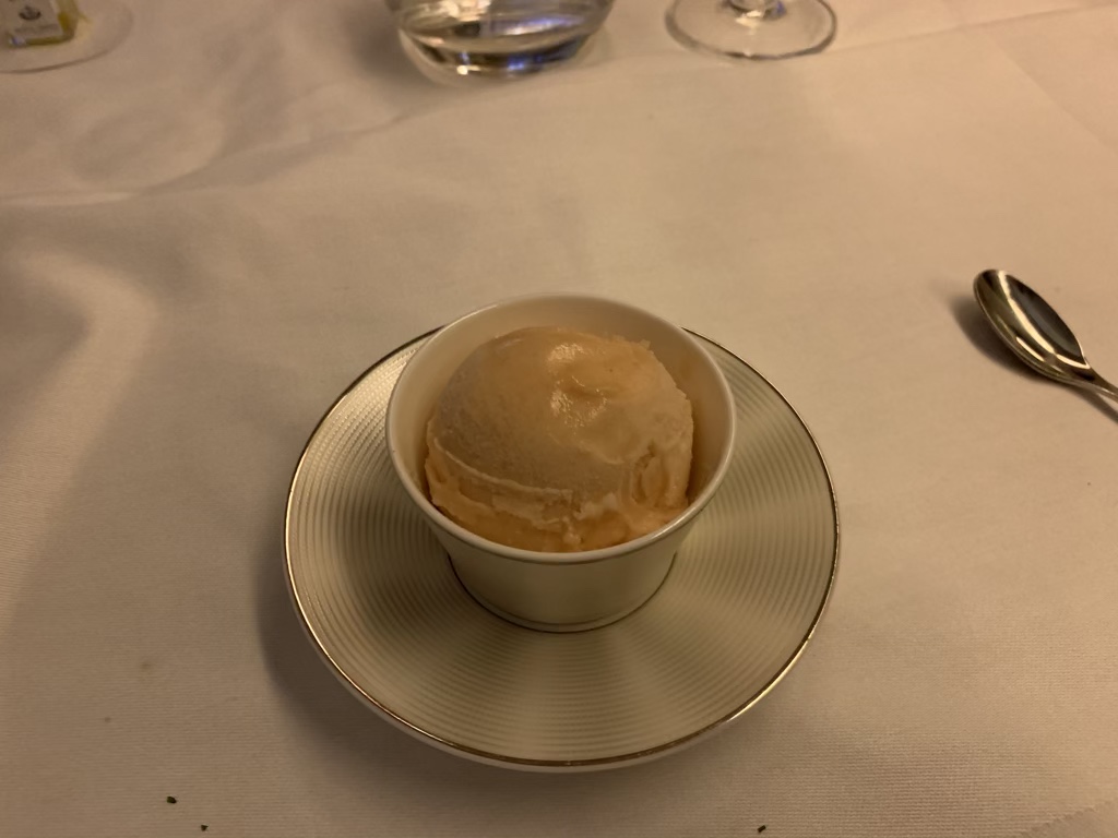 Nach der Vorspeise wurde ein Melonensorbet als Zwischengang serviert.