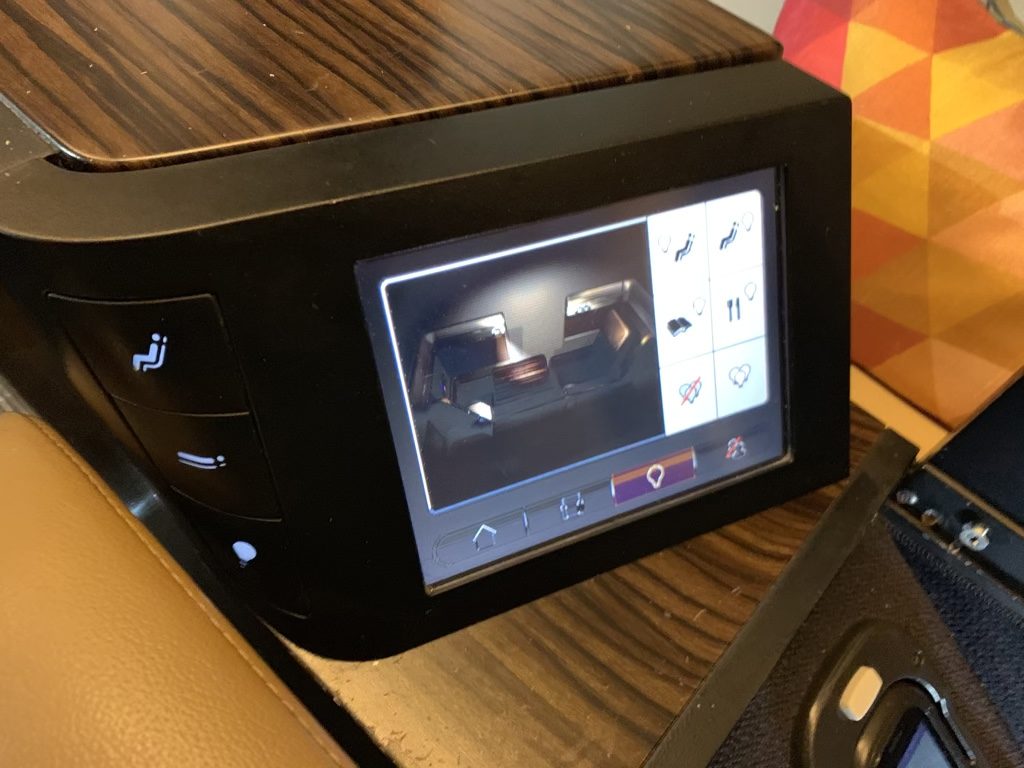 Rechts neben dem Sitz befand sich ein kleiner Touchscreen, über welchen man den Sitz und alle Lichter der Suite steuern konnte. Über einige Wahltasten konnte man den Sitz auch schnell verstellten.