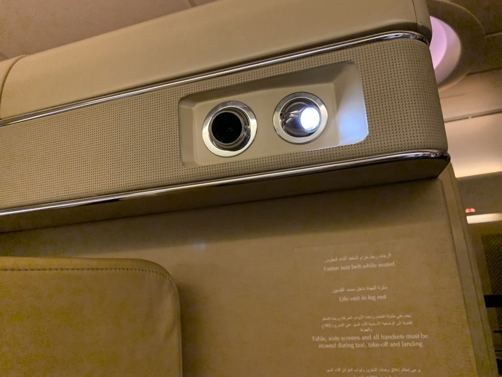Der Sitz selbst war schön gestaltet und wirkte auf mich durchdacht, mit einigen sehr sinnig angebrachten Elementen. So gab es am Sitz eine Reihe von Leselichtern, mit welchen man die Suite sehr gut ausleuchten konnte. Auch das Frischluftventil direkt in der Suitewand hat mir gut gefallen, da man so die Suite zum Schlafen etwas herunterkühlen konnte.
