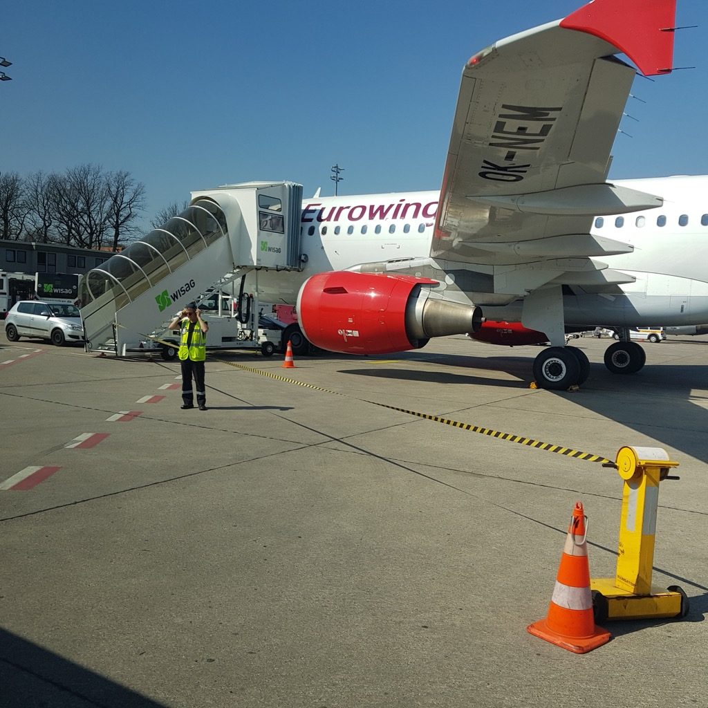 Der Flieger war ein A319 der CSA, welche mit drei Maschinen bei Eurowings in Stuttgart im Wetlease aushilft. Die Crew empfing die Gäste freundlich und half proaktiv beim Handgepäckverstauen. Die Sicherheitsinstruktionen kamen von kleinen Deckenmonitoren, über diese war später während des Fluges die Flugroute angezeigt worden.