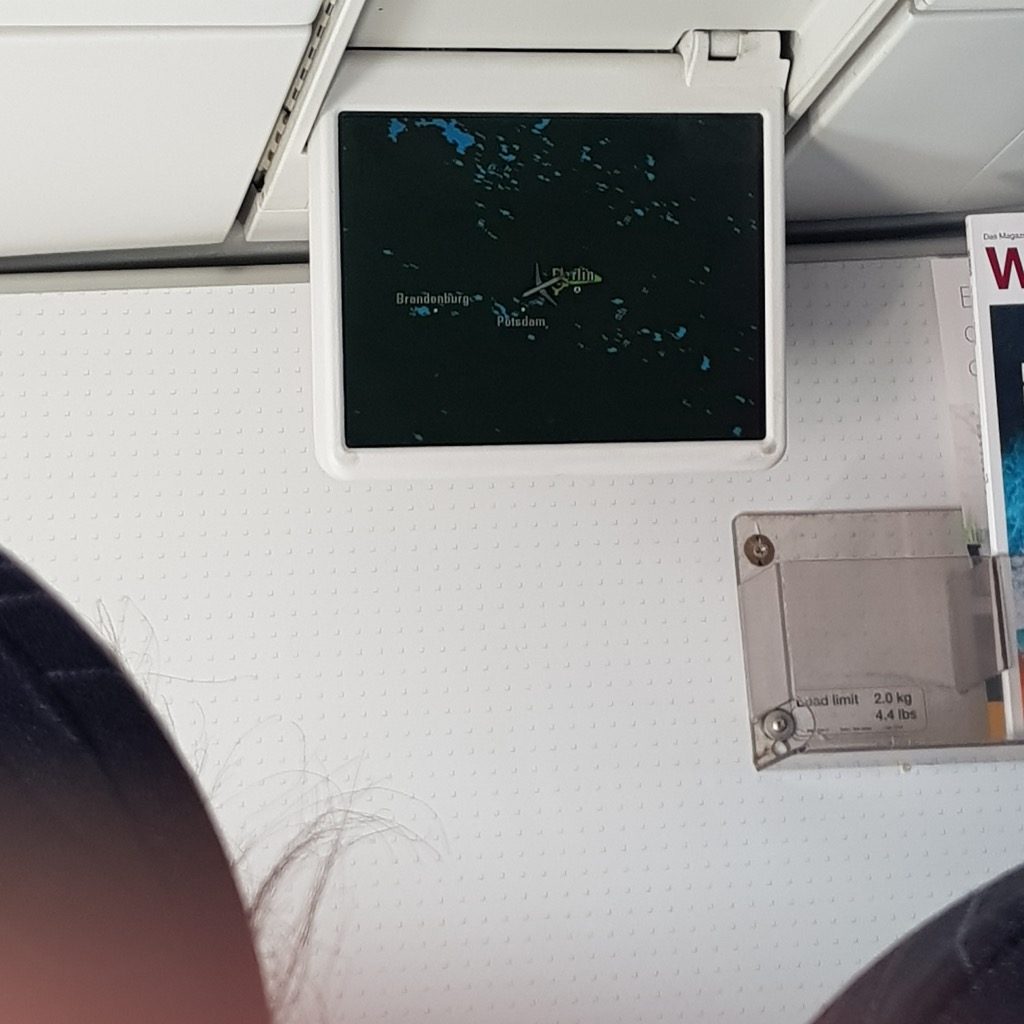 Der Sitz bei CSA unterscheidet sich sehr vom „Europa-Klappstuhl“ der Lufthansa Group. Der Stoffsitz war gut gepolstert und die Beinfreiheit in den vorderen Reihen hervorragend. Der Klapptisch kam mir marginal größer vor, nachgemessen habe ich jedoch nicht. Bei Eurowings/Germanwings eigenen Flugzeugen entspricht der Sitz dem der Lufthansa-Europakabine.