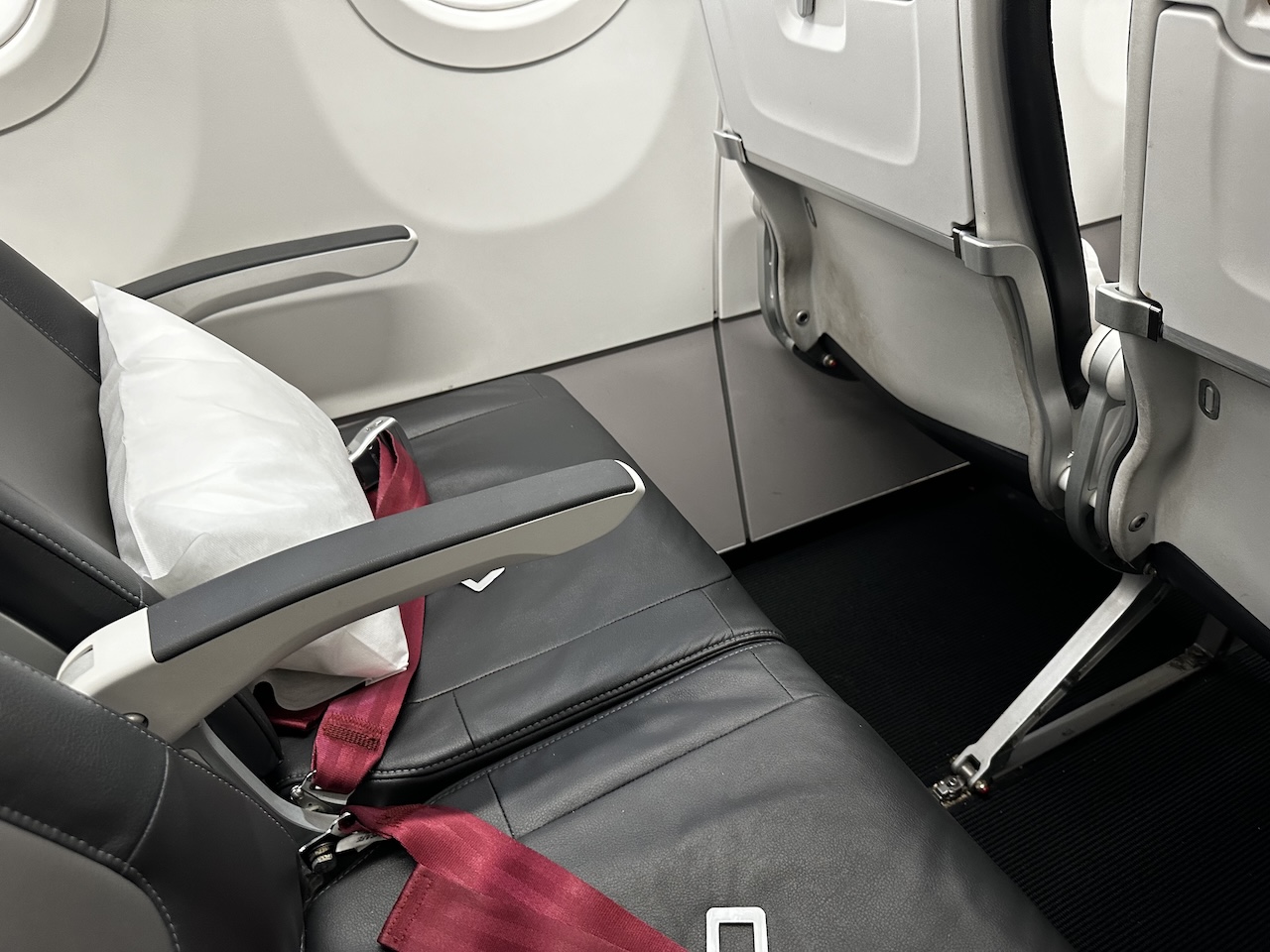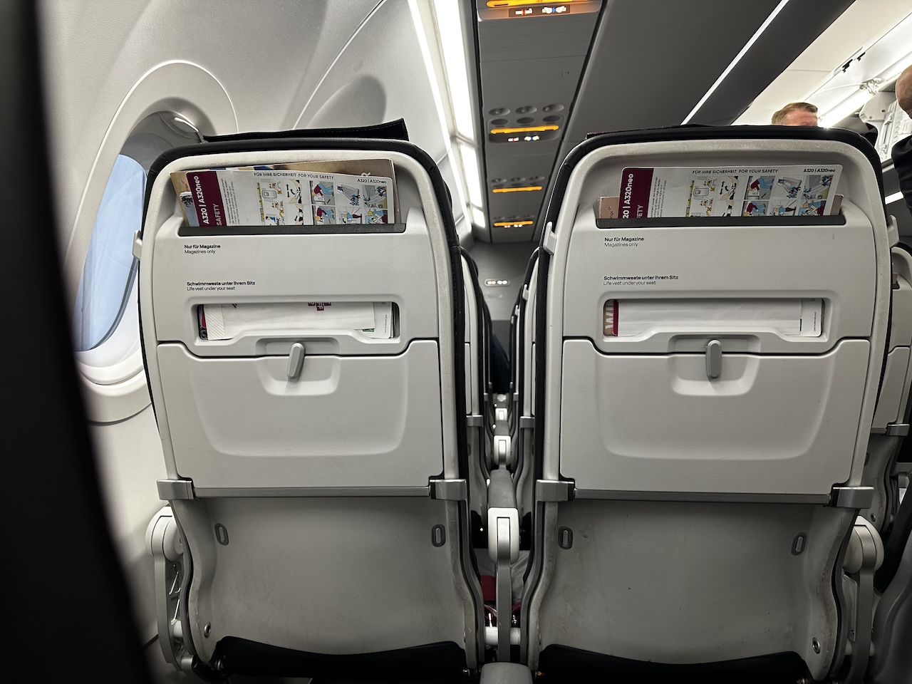 Kabine und Sitz waren mir noch vom Hinflug in Erinnerung, die Plätze in den vorderen Reihen unterscheiden sich nur minimal vom denen in der Regulären Economy Class.