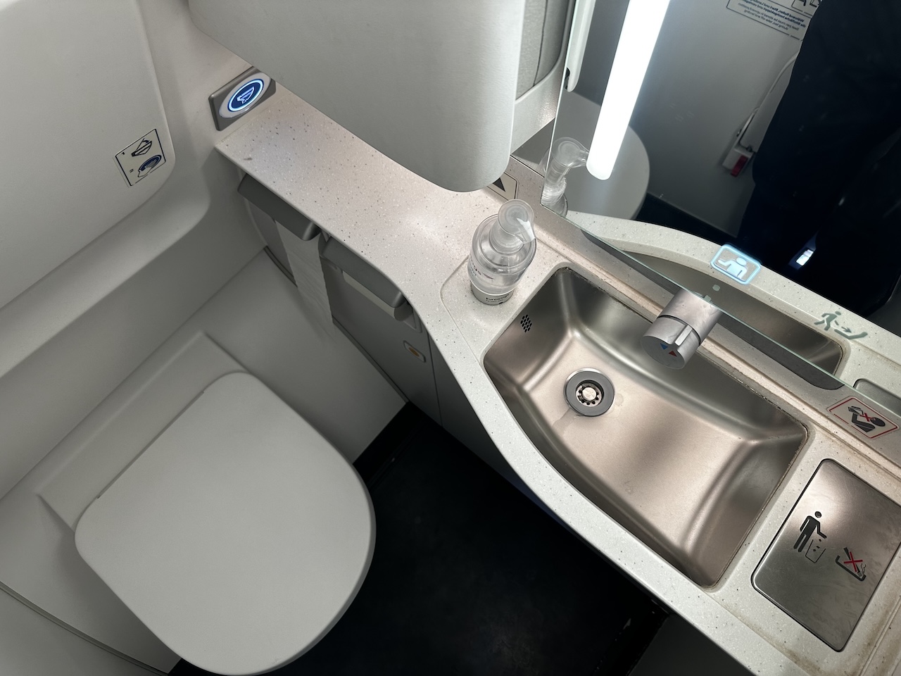 Der Waschraum im vorderen Bereich ist im Vergleich zu denen im hinteren Bereich deutlich größer und hat kein Miniaturwaschbecken.