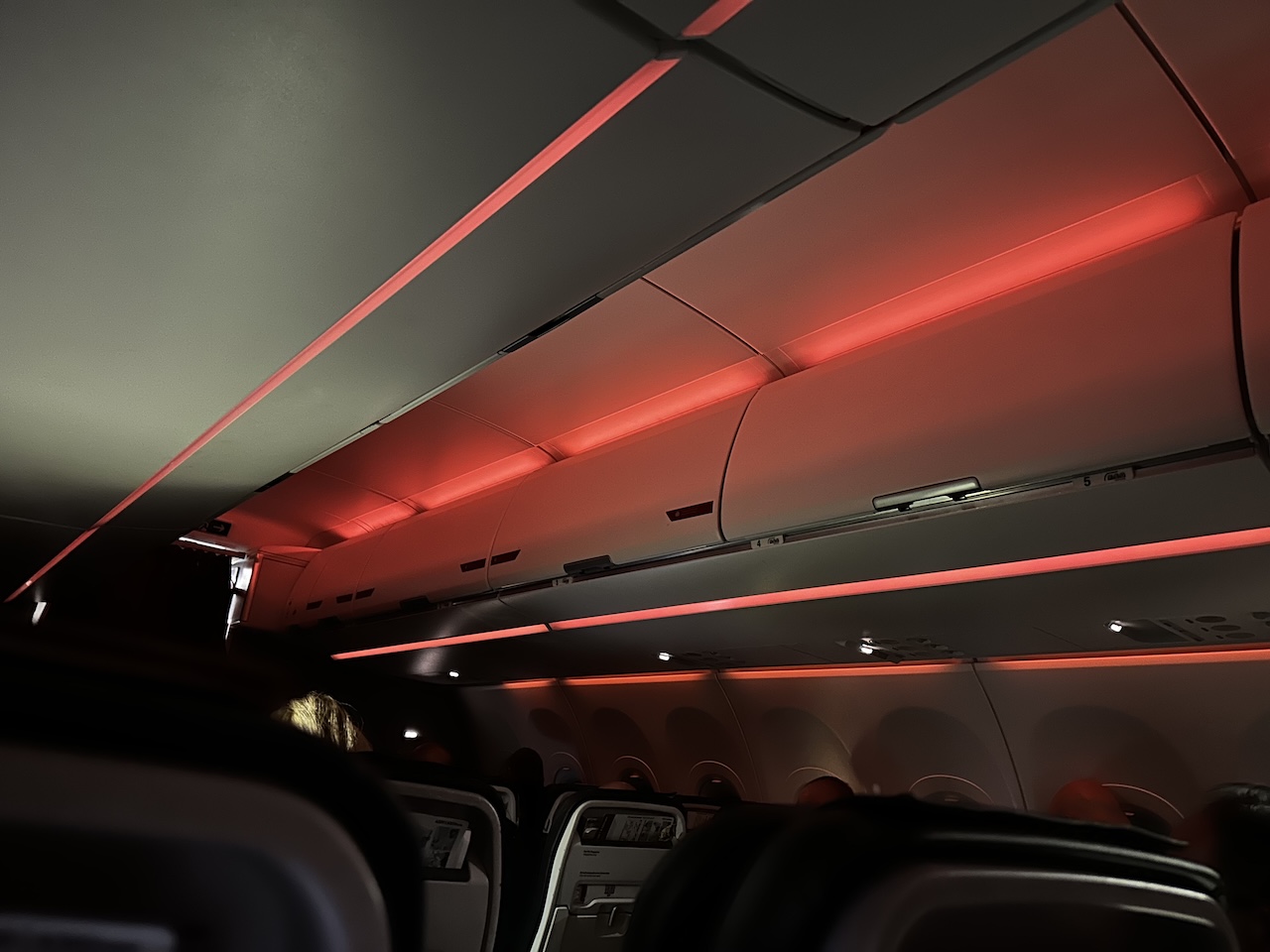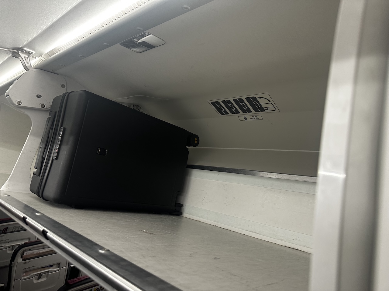 Das Boarding zog sich etwas, obwohl es nicht am überzähligen Handgepäck lag. Die größeren Ablagefächer sorgen wirklich für ein schnelleres Boarding- vorausgesetzt die Passagiere sind bereit, ihre Taschen und Trolleys nicht unbedingt direkt am Sitzplatz unterzubringen. Sinn macht das ganze auch nur dann, wann die Rollenkoffer hochkant verstaut werden.