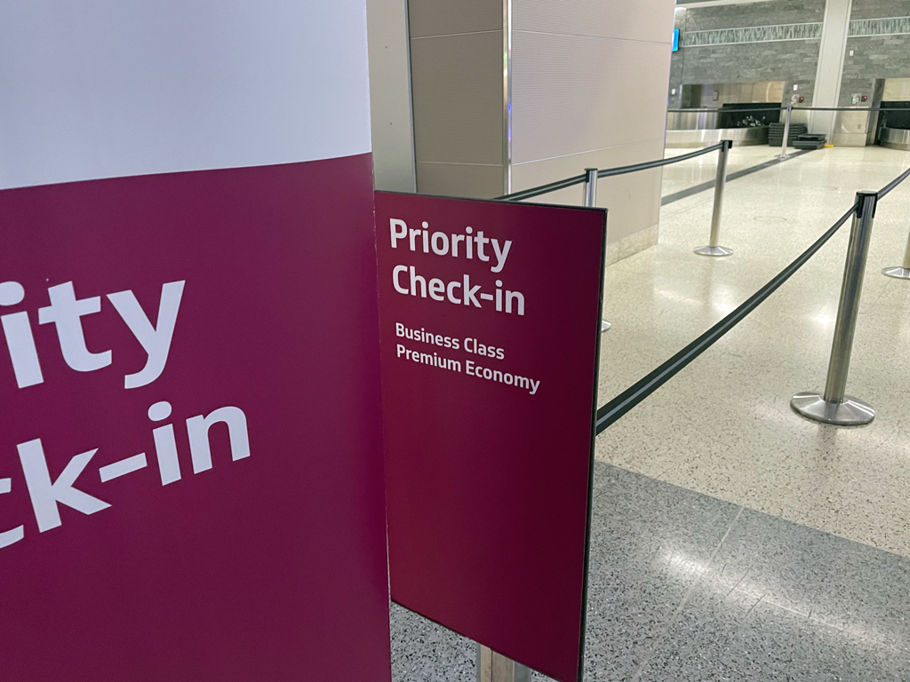 Aus der Warteschlange für Business Class Reisende wurde ich dann an den nächsten freien Schalter gebeten. Zufälligerweise war dieser grundsätzlich für das Check-In der Economy Gäste zuständig.