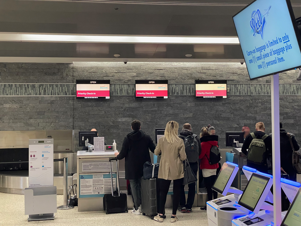 Ich übergab der Mitarbeiterin meinen Reisepass. Sie arbeitete am Computer, ließ mich wissen, dass mein reservierter Platz noch verfügbar sei (Warum auch nicht?) und übergab mir die Bordkarte. Ich fragte kurz, welche Lounge ich denn besuchen dürfe. Darauf blickte sie mich etwas irritiert an, fragte die Kollegin neben sich und ließ mich wissen, dass es irgendwo in der Nähe von Gate D33 eine Lounge gäbe. Die könne ich wahrscheinlich nutzen. Ich müsste das ausprobieren und dort mein Ticket vorzeigen.