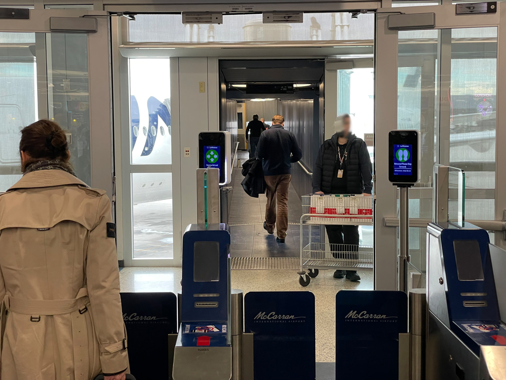 Das Boarding begann dann fast pünktlich um 09:30 Uhr des Folgetages. Als Angehöriger der Boardinggruppe 1 machte ich mich bereit, ins Flugzeug zu stürmen. Aber halt, da hatte ich die Rechnung gemacht, ohne auf das große Ganze dieses Fluges zu blicken. Natürlich funktionierte das Boarding nicht einfach nach dem Prinzip Boardingpass scannen, Pass zeigen und an Bord gehen. In Las Vegas sollten Kameras unsere Gesichter abscannen und dann das Boarding freigeben. Das funktionierte bei den ersten zehn Passagieren ganz genau kein einziges Mal. Leider öffneten sich ohne Freigabe „des Systems“ die Türen nicht, so dass wir dann um die Mitarbeitertische herum durch den Mitarbeitereingang boarden mussten. Das ging dann statt in Stereo nur noch in Mono, da auf einer Seite der Scanner für die Bordkarten nicht funktionierte.