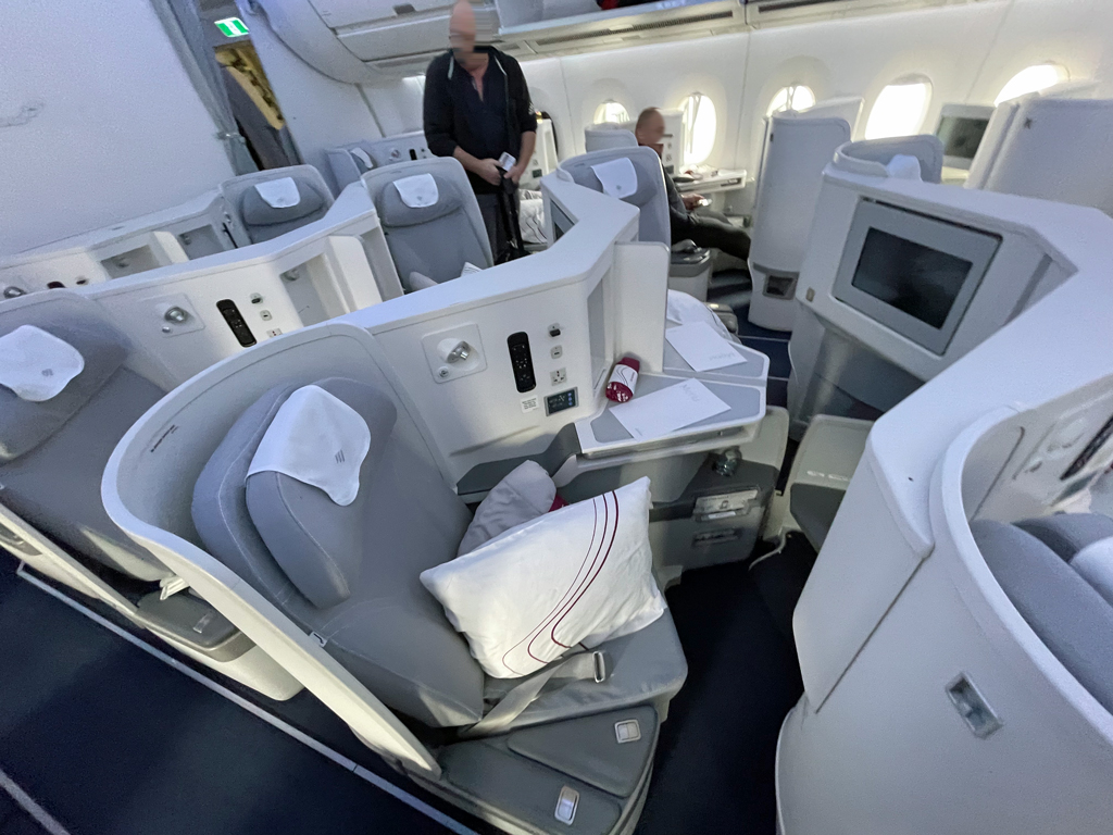 Ins Flugzeug ging es durch die Tür 2L. Und dann links ab in die Business Class.