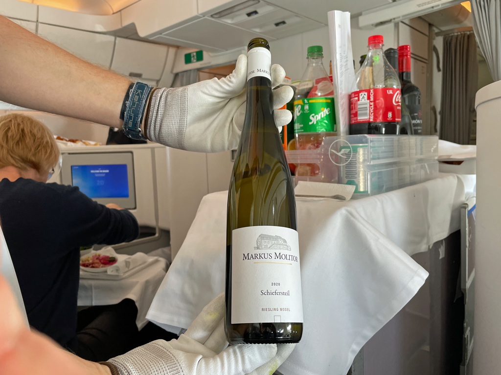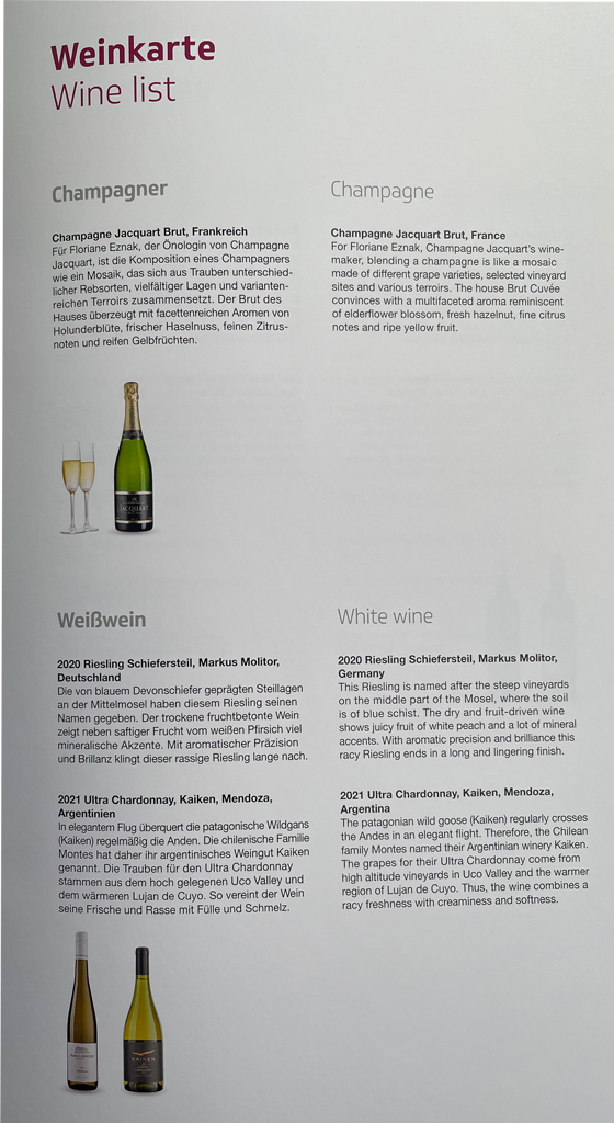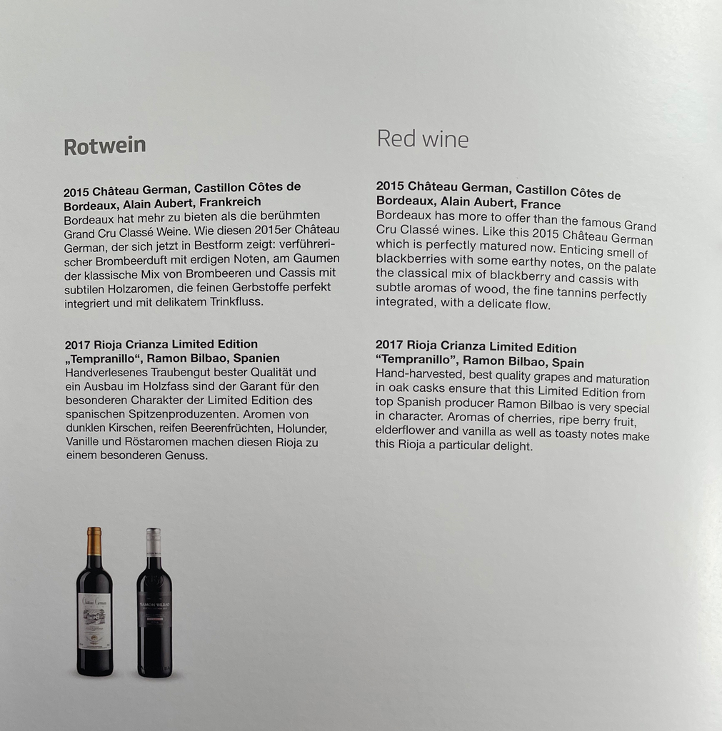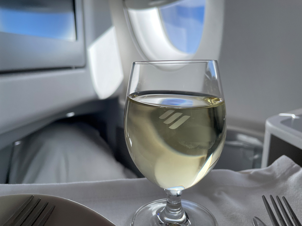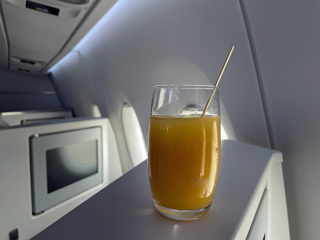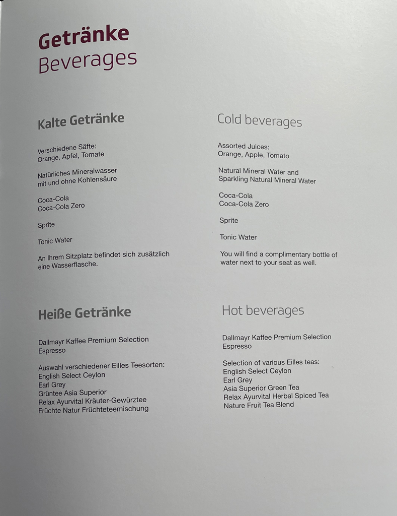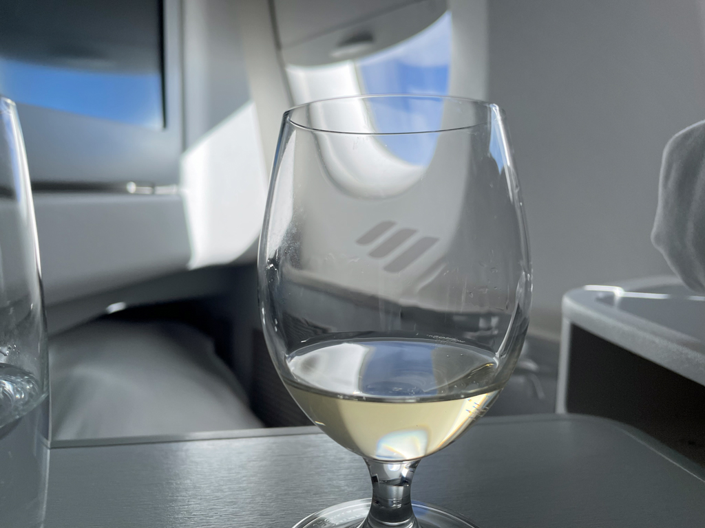 Ich möchte hier gerne erwähnen, dass Eurowings Discover sich Mühe gibt, die Getränke schmecken zu lassen. Statt 08/15 Gläsern mit Rollrand kommen in der Business Class Gläser mit geschliffenem Rand von Schott Zwiesel zum Einsatz.
