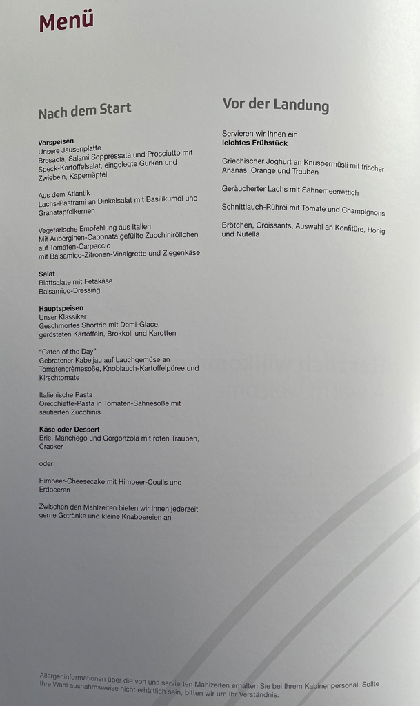 Da das Entertainmentsystem nicht funktionierte, konnte ich mich ein wenig mehr als sonst auf das Essen konzentrieren.