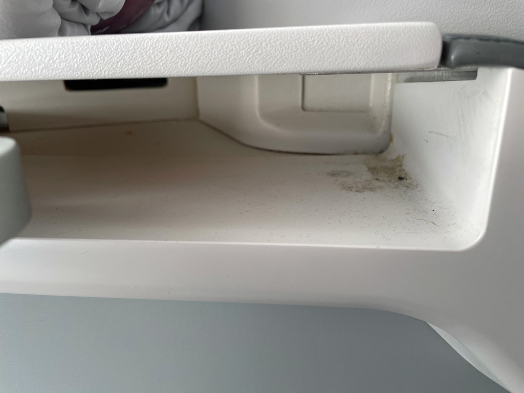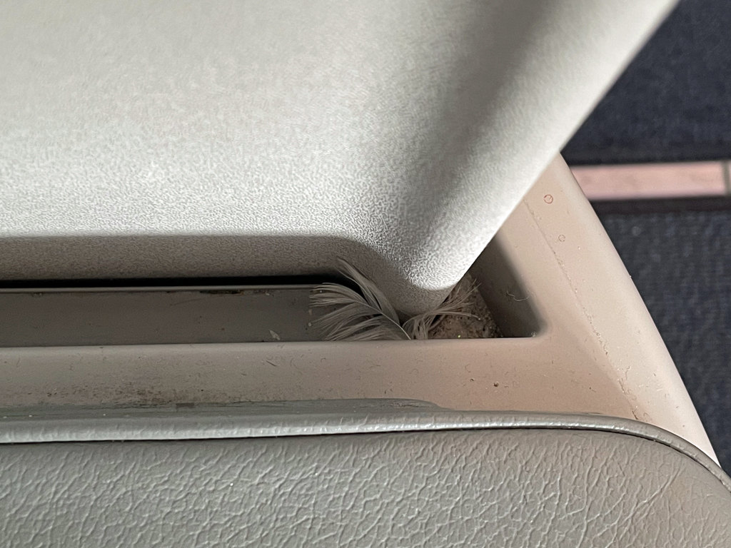 Ich fand den Sitz nicht richtig gut gereinigt. Nach ca. 20 Stunden am Boden hätte man die Zeit gehabt, aber wahrscheinlich geben die Serviceverträge nur eine schnelle und oberflächliche Reinigung der Flugzeuge her. Ganz taufrisch war die Kabine nicht mehr, das sah man an verschiedenen Stellen.