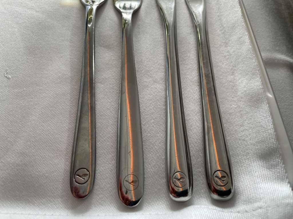 Und das korrekte Hinlegen der Servietten ist Teil des Trainings für die Arbeit in der Business Class. Und wenn Crews sich die Zeit nehmen bei einer vielleicht halbvollen Business Class Kabine darauf zu achten, zeichnet es sie aus.